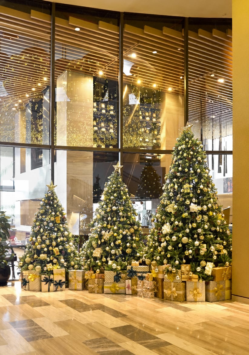 The resort begins the festive season with a christmas tree lighting ceremony in the main lobby. The display features a coastal Christmas theme with coral, seashells, and golden accents. Each evening, the Phu Quoc children's choir performs familiar christmas carols here.