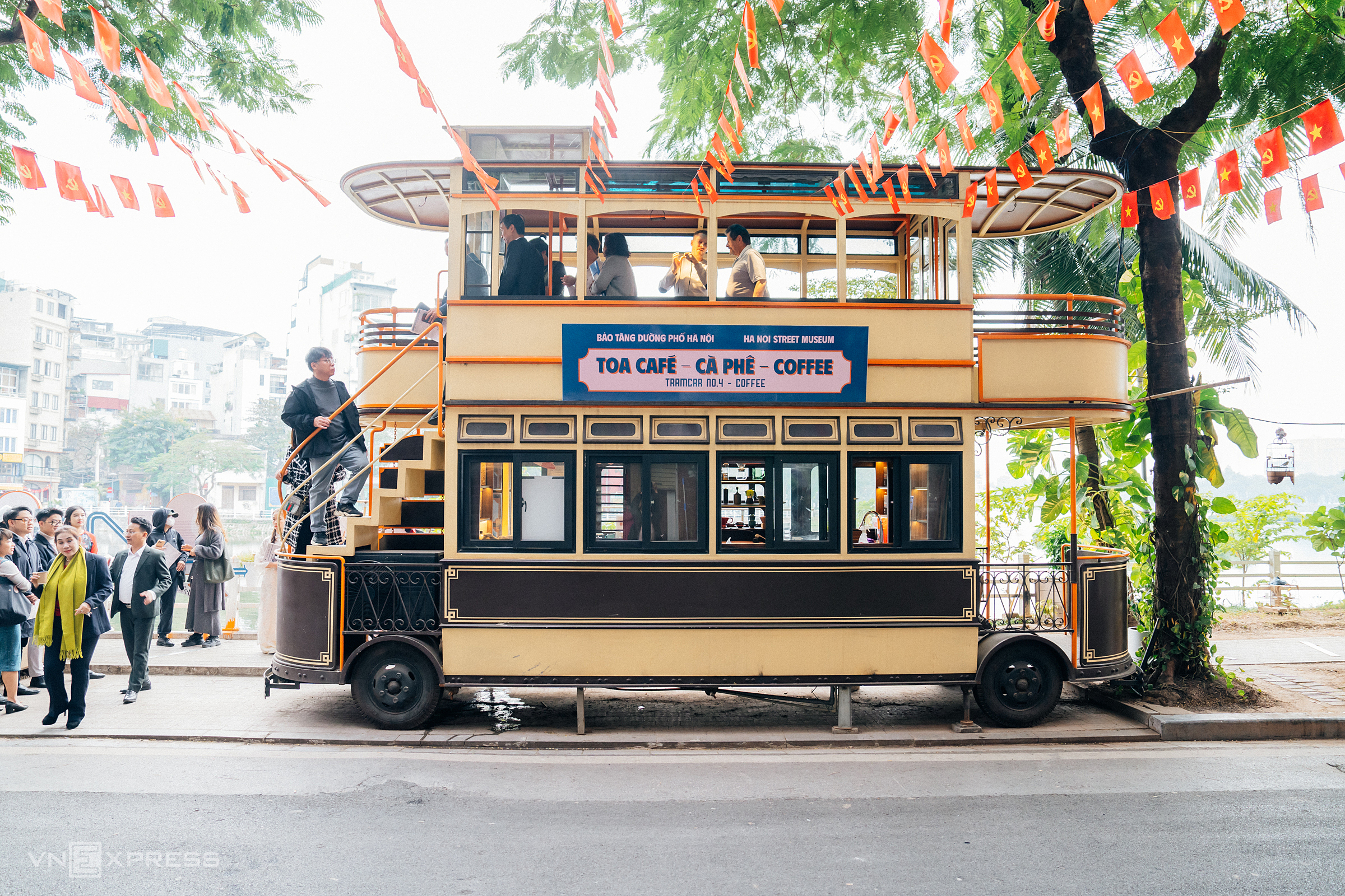 The "Cafe - Ca phe - Coffee" tram car invites visitors to explore the world of Vietnamese coffee, from its origins to its distinct bean varieties.