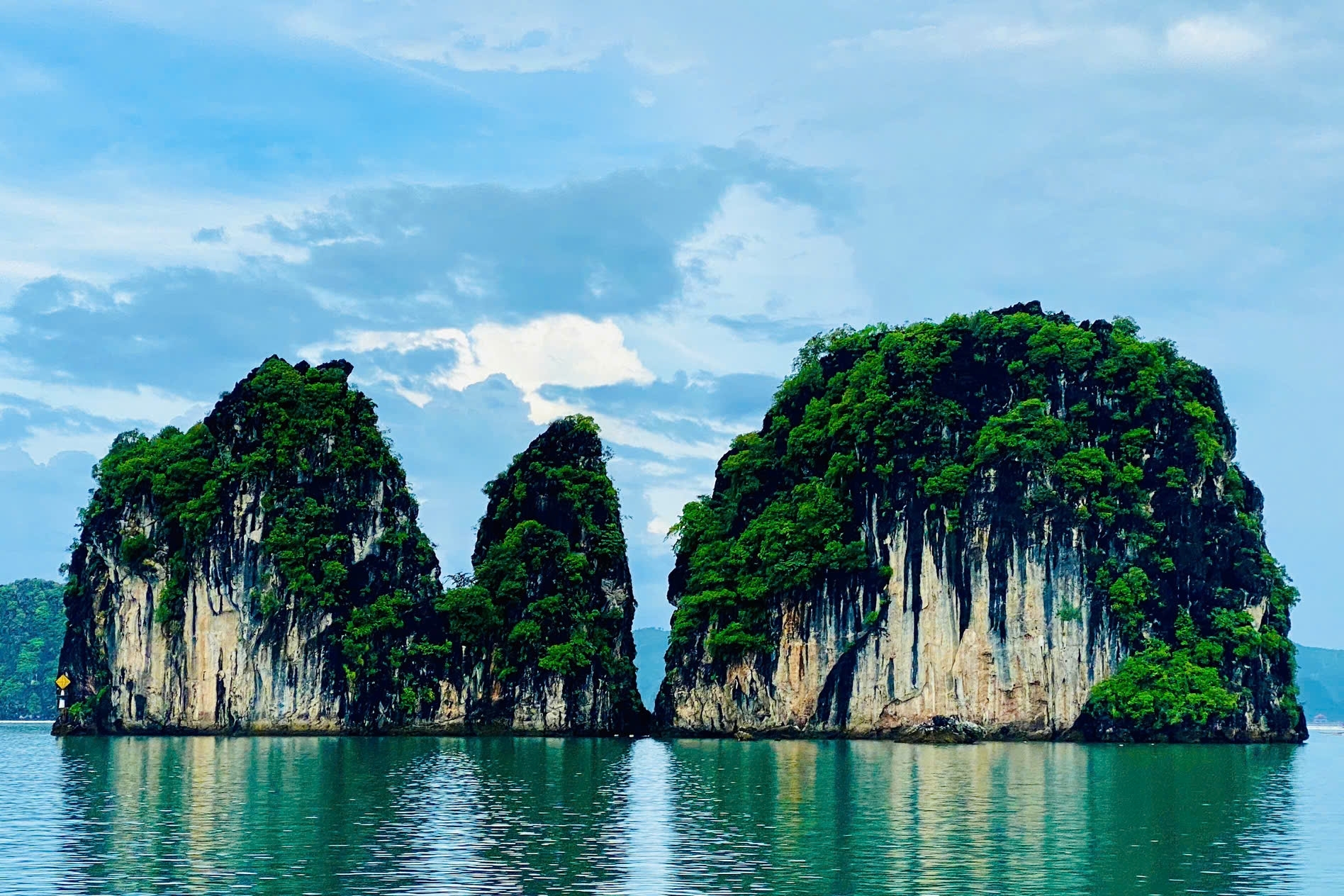 Ha Long Bay with its majestic limestone mountains and blue sea. |