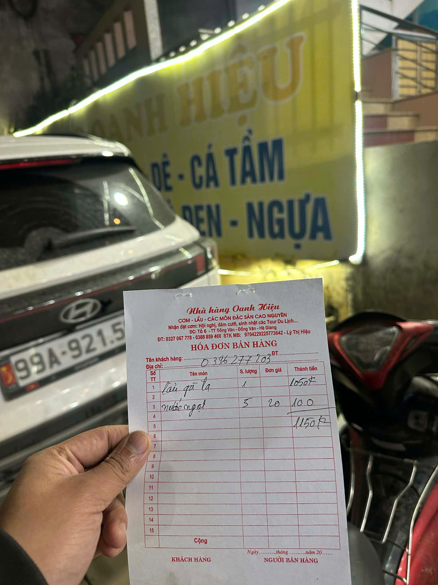 A tourist from Hanoi, Nguyen Duc Thang, chose Ha Giang for his New Year's holiday. On the evening of 1/1, upon arriving in Dong Van, he and his friends visited Oanh Hieu restaurant for chicken hotpot, a dish promoted as a local specialty. According to Thang, the hotpot served contained a small amount of chicken, disproportionate to its 1,2 million VND price.
