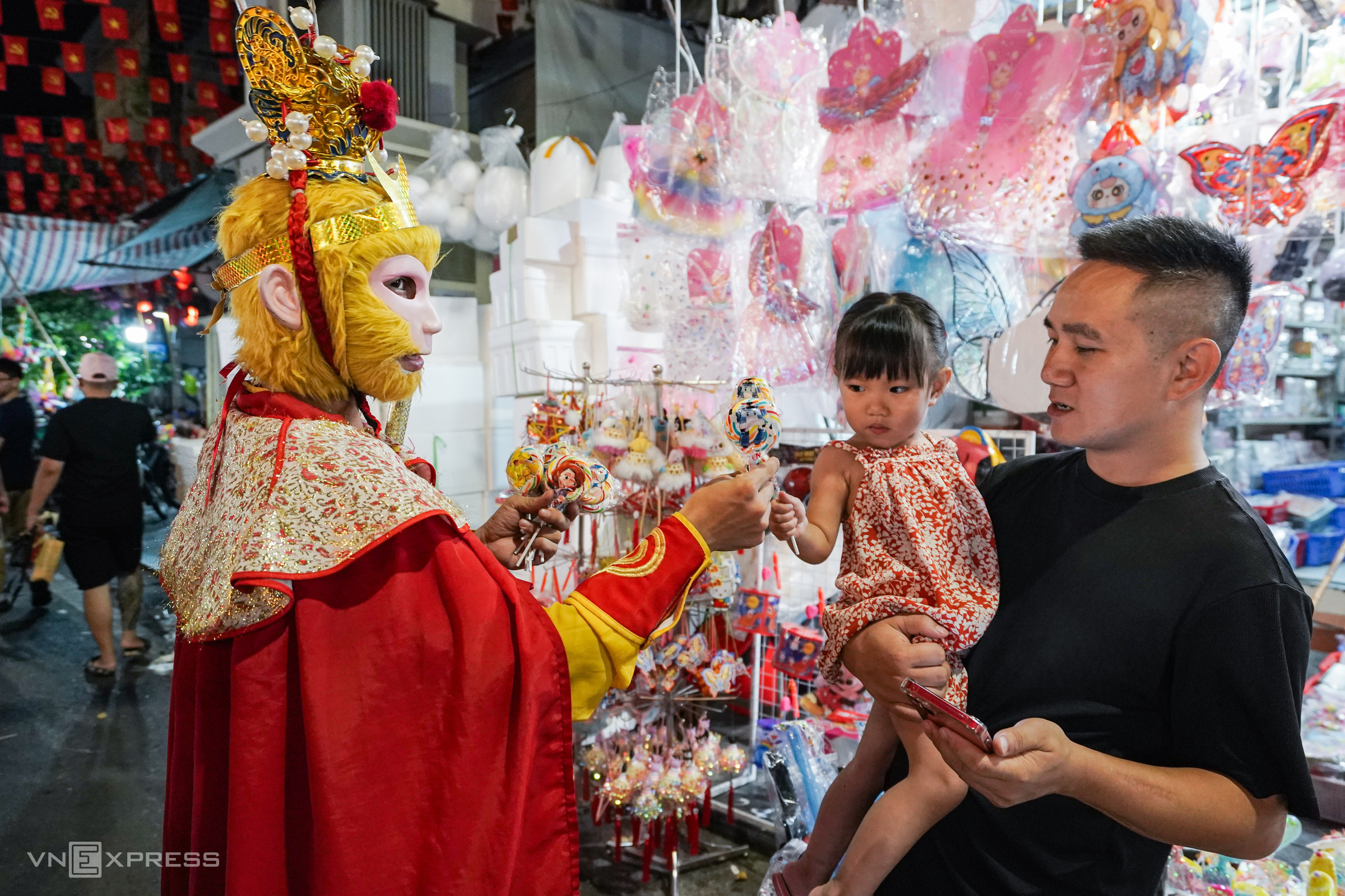 Many families prepared special outfits for their children. Vu Thi Thao bought her grandson a lion dance costume for 350,000 VND.