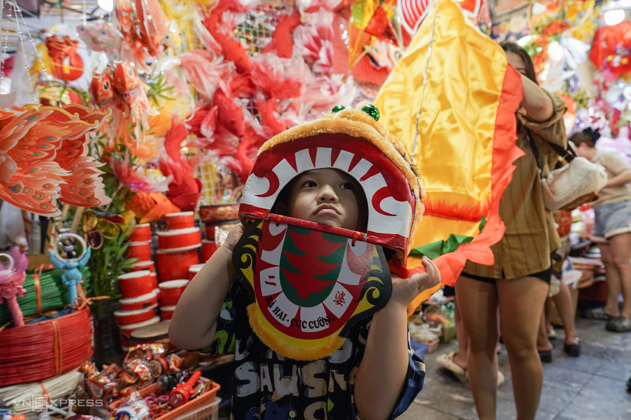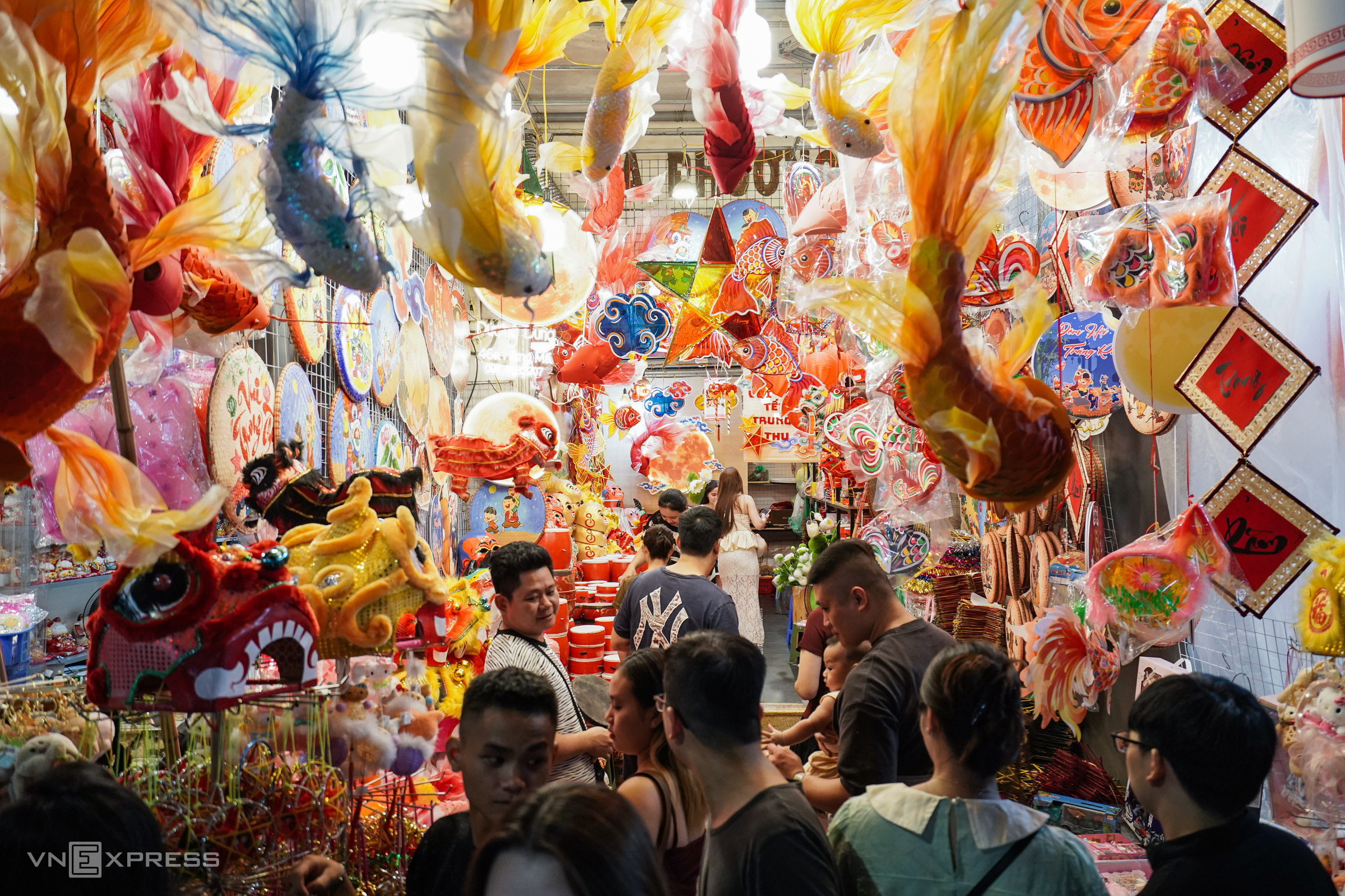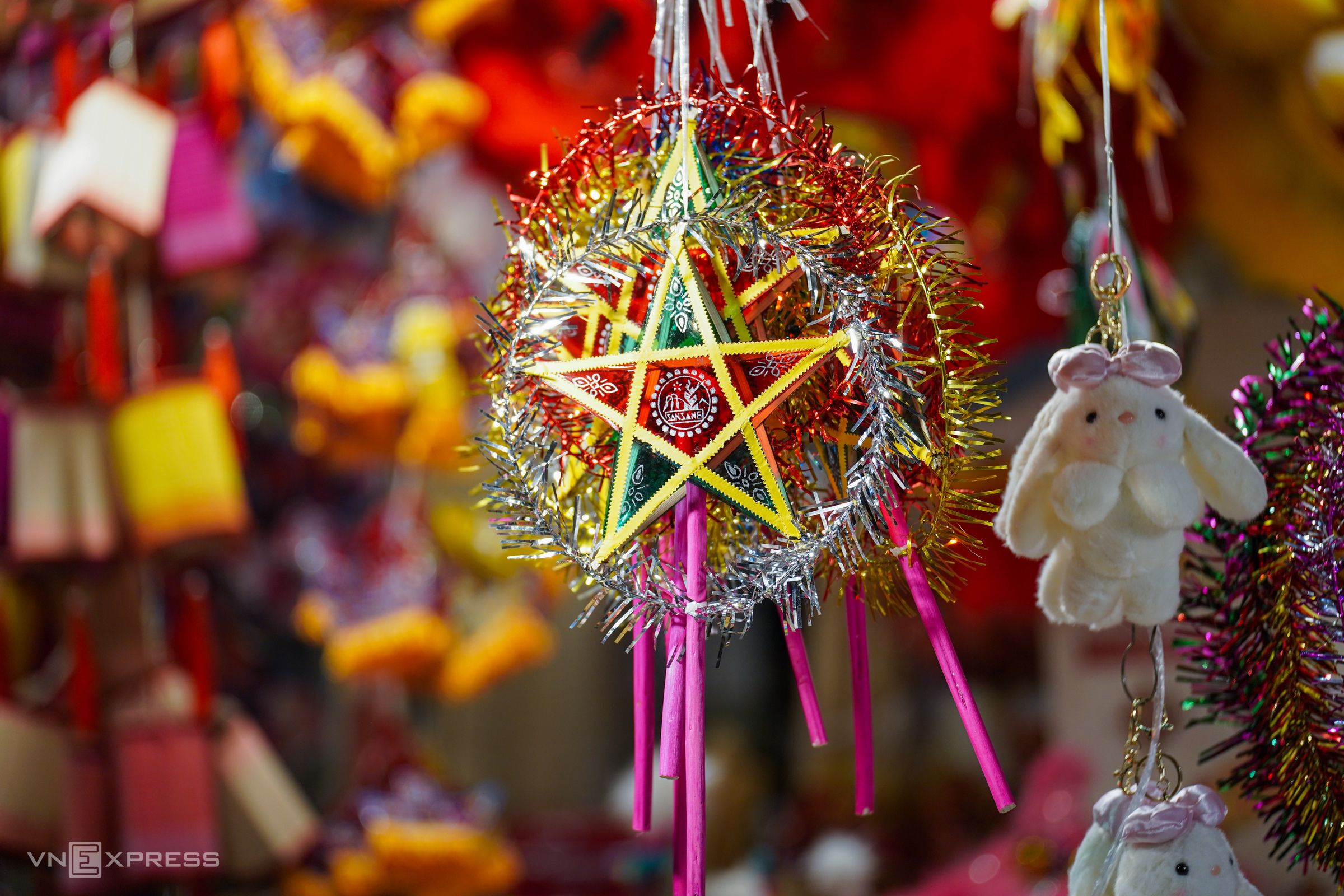 In addition to decorations, various folk masks, star lanterns, and lanterns with many new designs attracted buyers. The price of each item ranged from 30,000 to 70,000 VND.