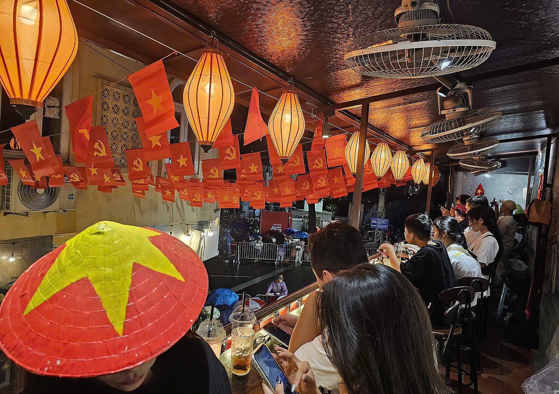 Several cafes on Nguyen Thai Hoc Street, near the Cua Nam intersection, also stayed open all night. Viet Anh, the owner of Aroids Cafe, explained that for both the rehearsal and the official ceremony, he would open from noon until the following day to serve parade-goers.