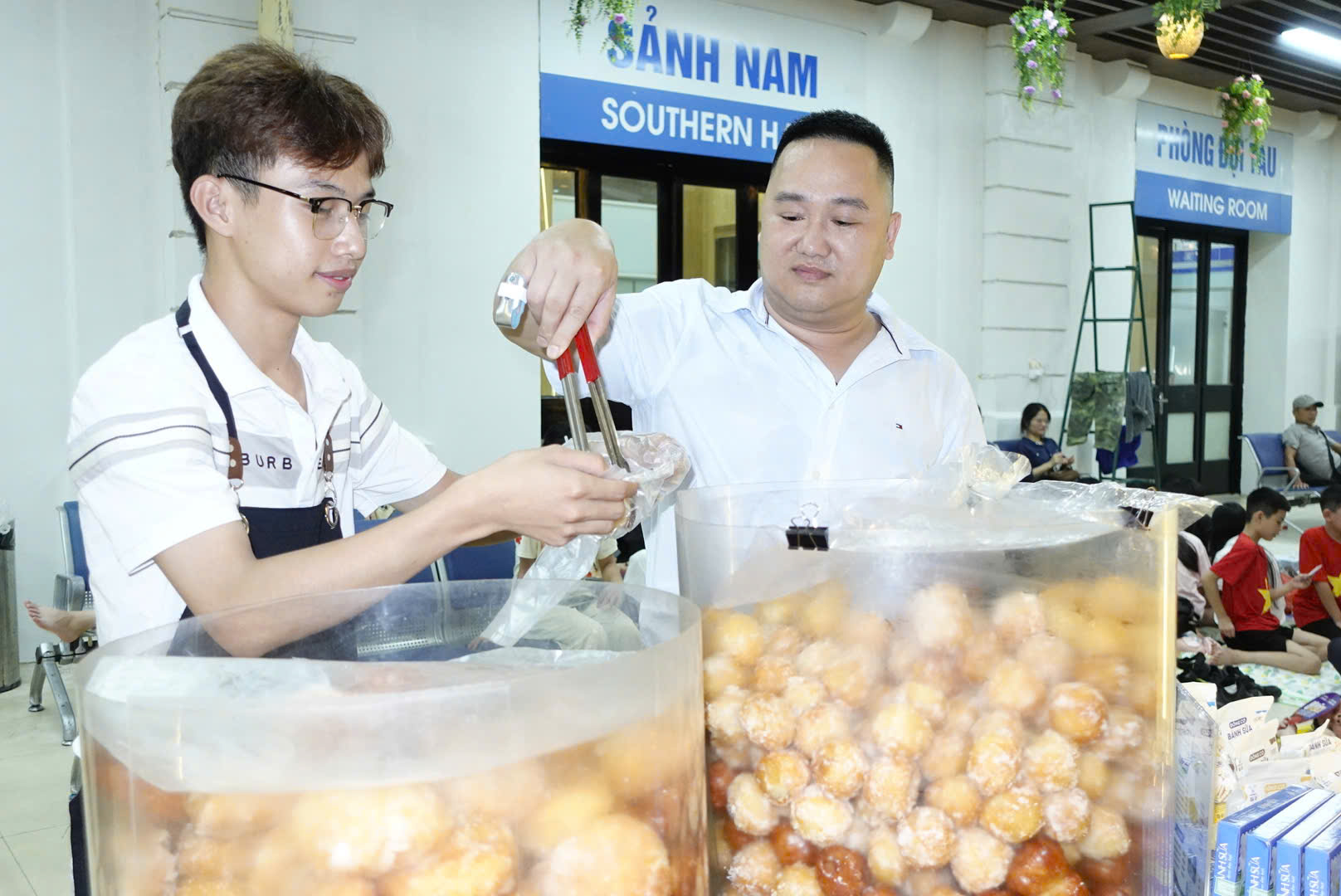 A few doors down, Ong Ba Tao Pho, with its small courtyard tucked away in an alley, was also filled with customers. The eatery offered sweet treats like tofu pudding, various che desserts, and other sweets. To accommodate customers who purchased seats for 100,000 VND per person, the eatery remained open overnight. They also served customers sitting across the street on the sidewalk, using security personnel as delivery people.