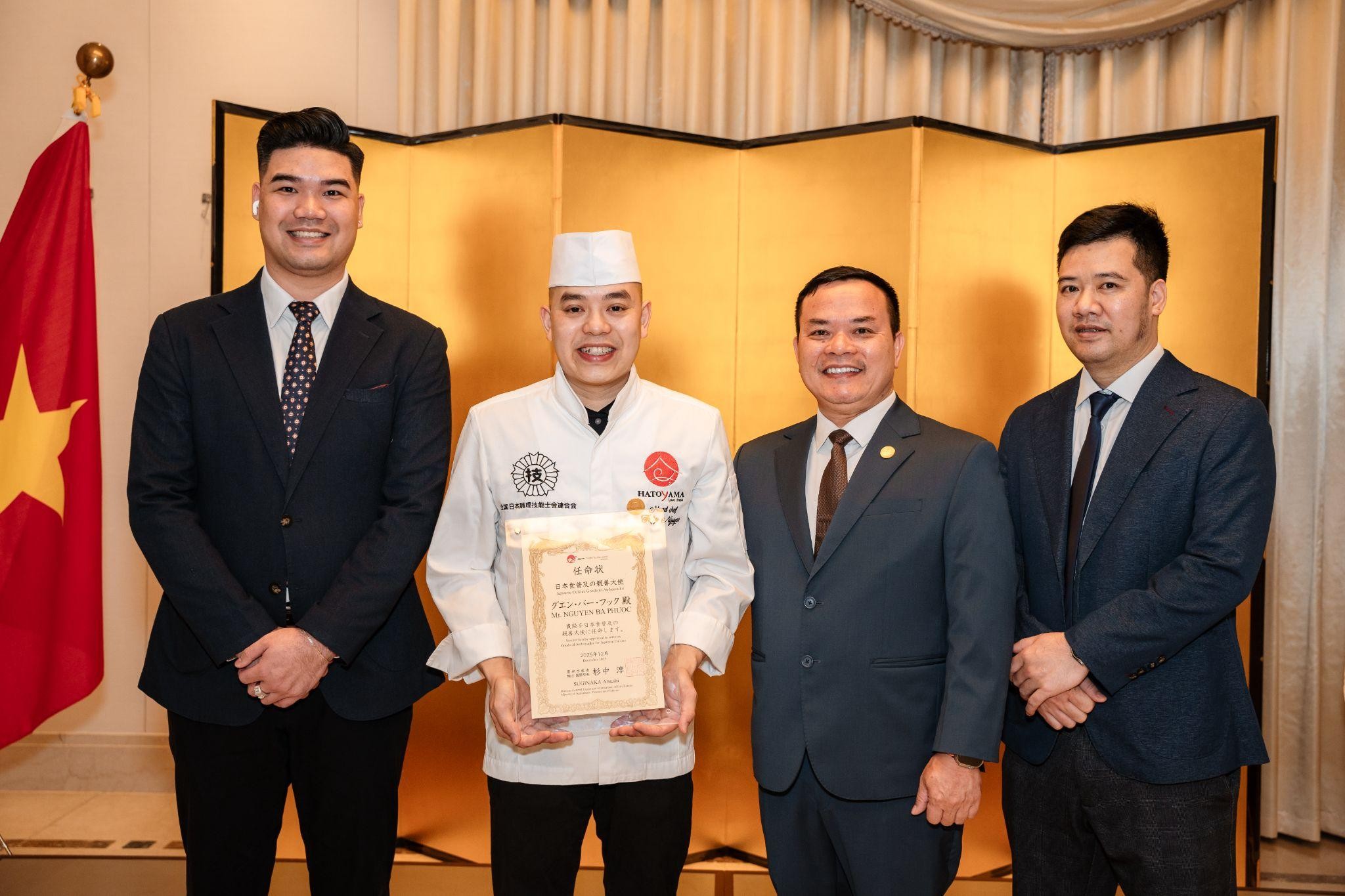 The appointment ceremony was organized by the Embassy of Japan in coordination with the Vietnam National Authority of Tourism. Ambassador Extraordinary and Plenipotentiary Naoki Ito presented the decision to Chef Nguyen Ba Phuoc (Chef Fuku Nguyen) of the Hatoyama Japanese seafood restaurant system.