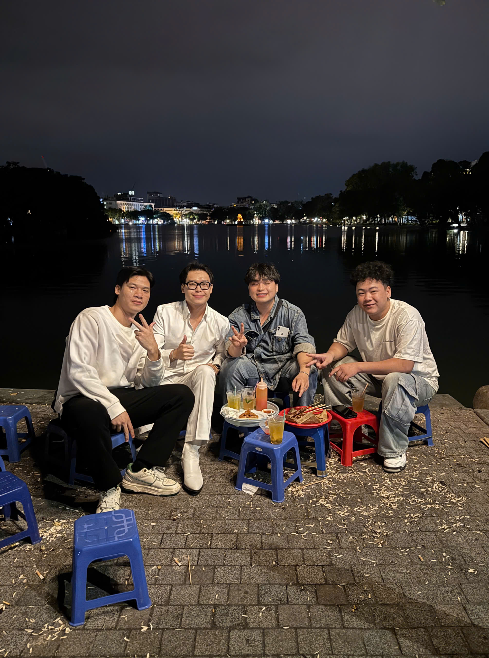 Hieu (wearing glasses) and his friends photographed their meal before the dispute with the stall owner. Photo: Provided |