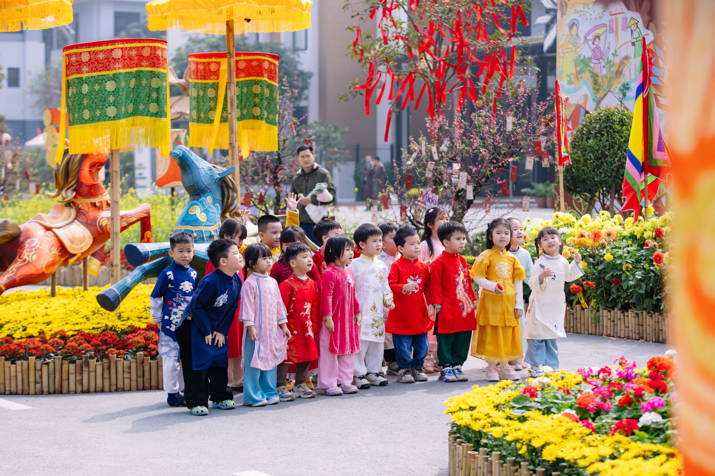 Some kindergartens brought students to Home Hanoi Xuan. Children, in colorful ao dai, cheered and exclaimed at the spacious environment and impressive flower street displays.