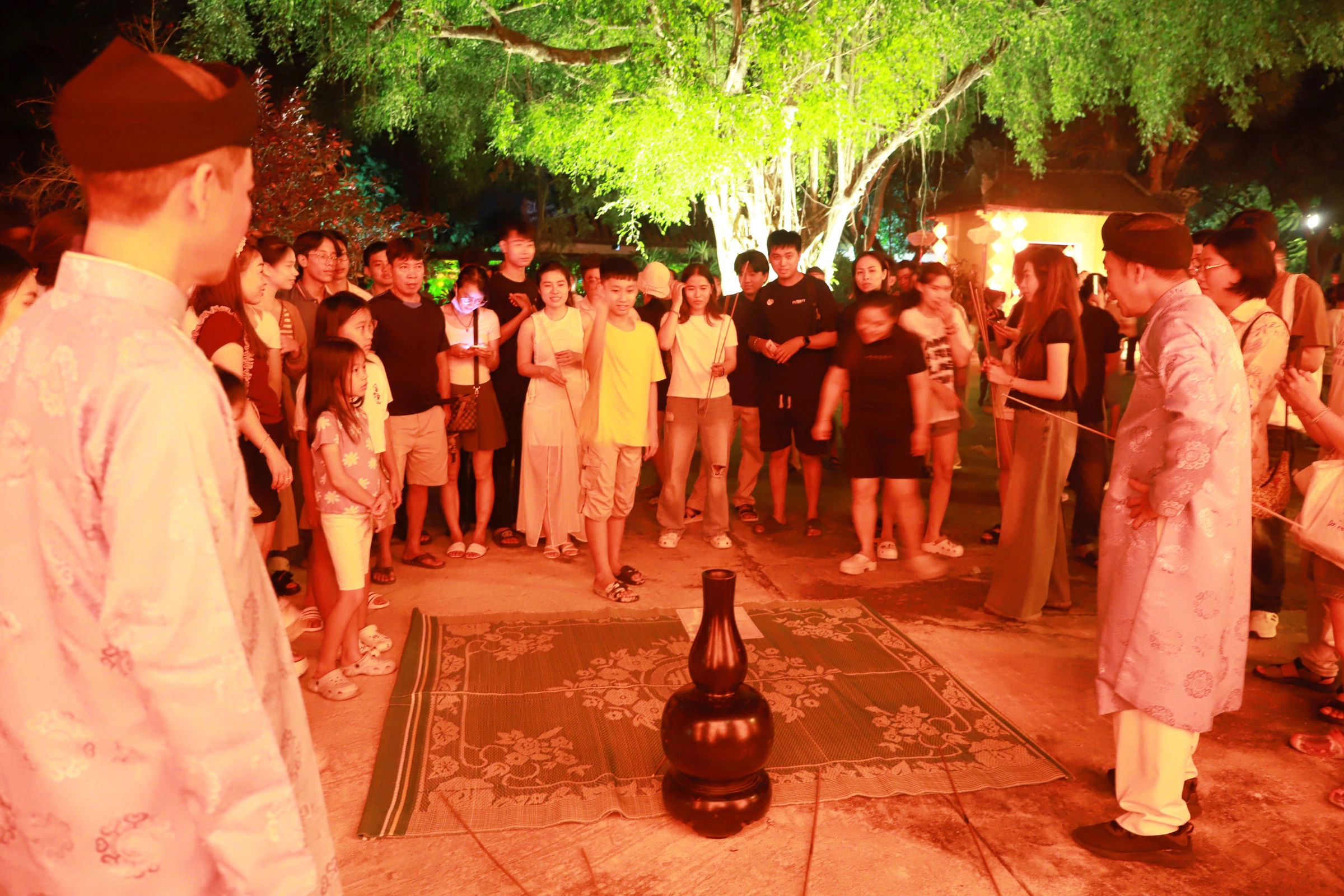 Tourists experience court games during the Mid-Autumn Festival at Hue Imperial City at night. Photo: Vo Thanh |