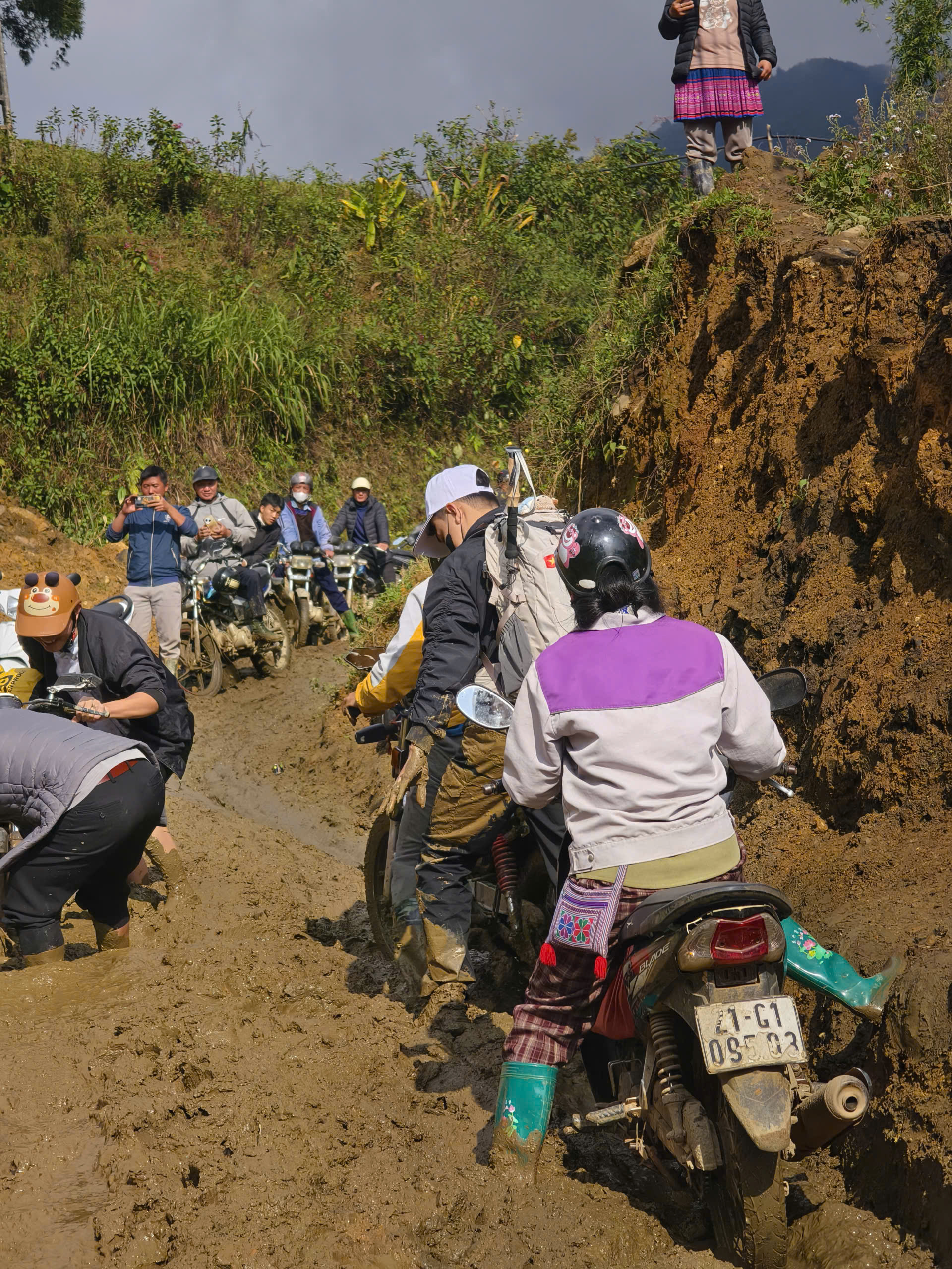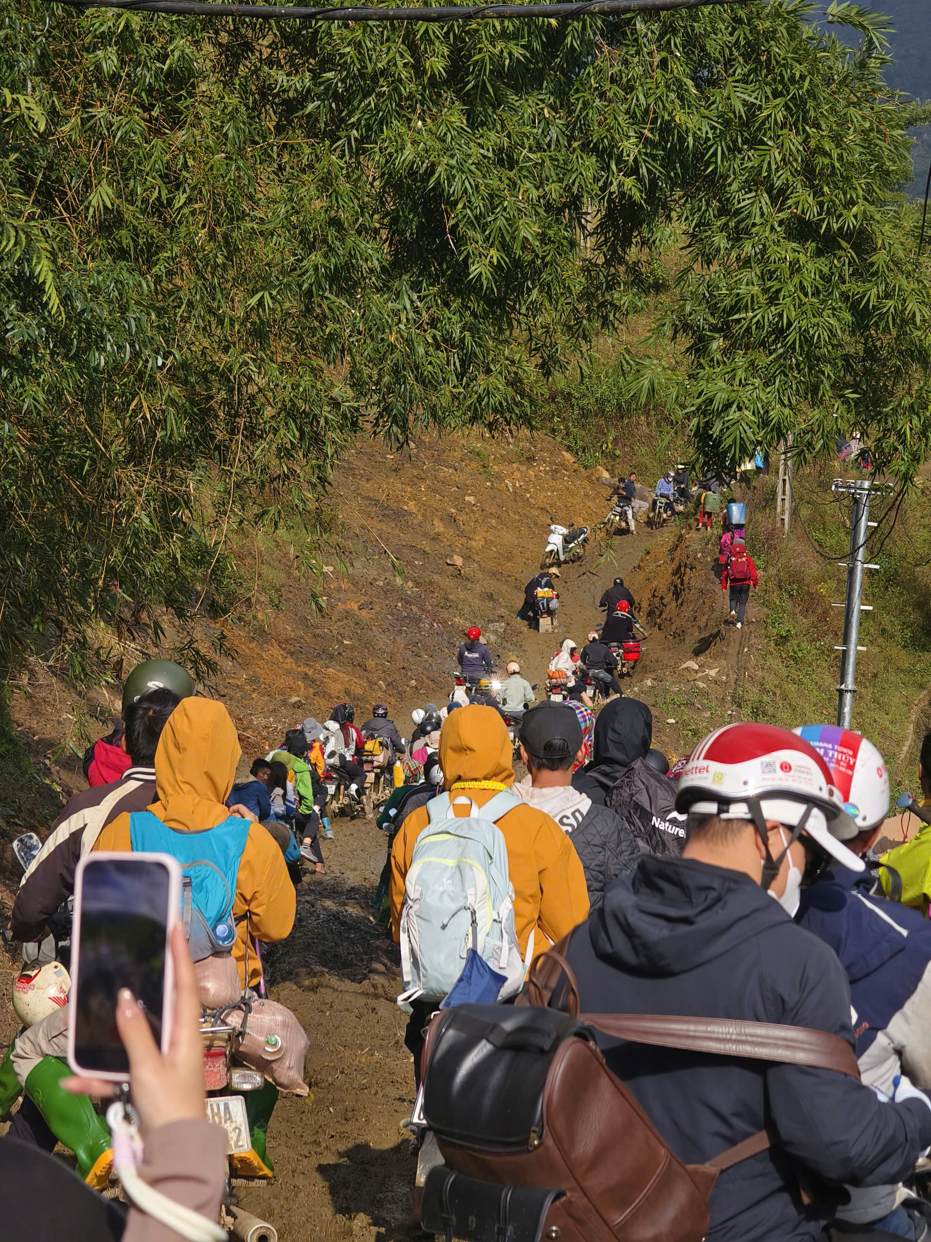 The descent proved equally challenging. On the afternoon of 16/11, the more than 1 km path from the rest stop to Tu San village took nearly two hours due to the continuous line of people. Previous rain had made the path slippery and muddy, further impeding progress.