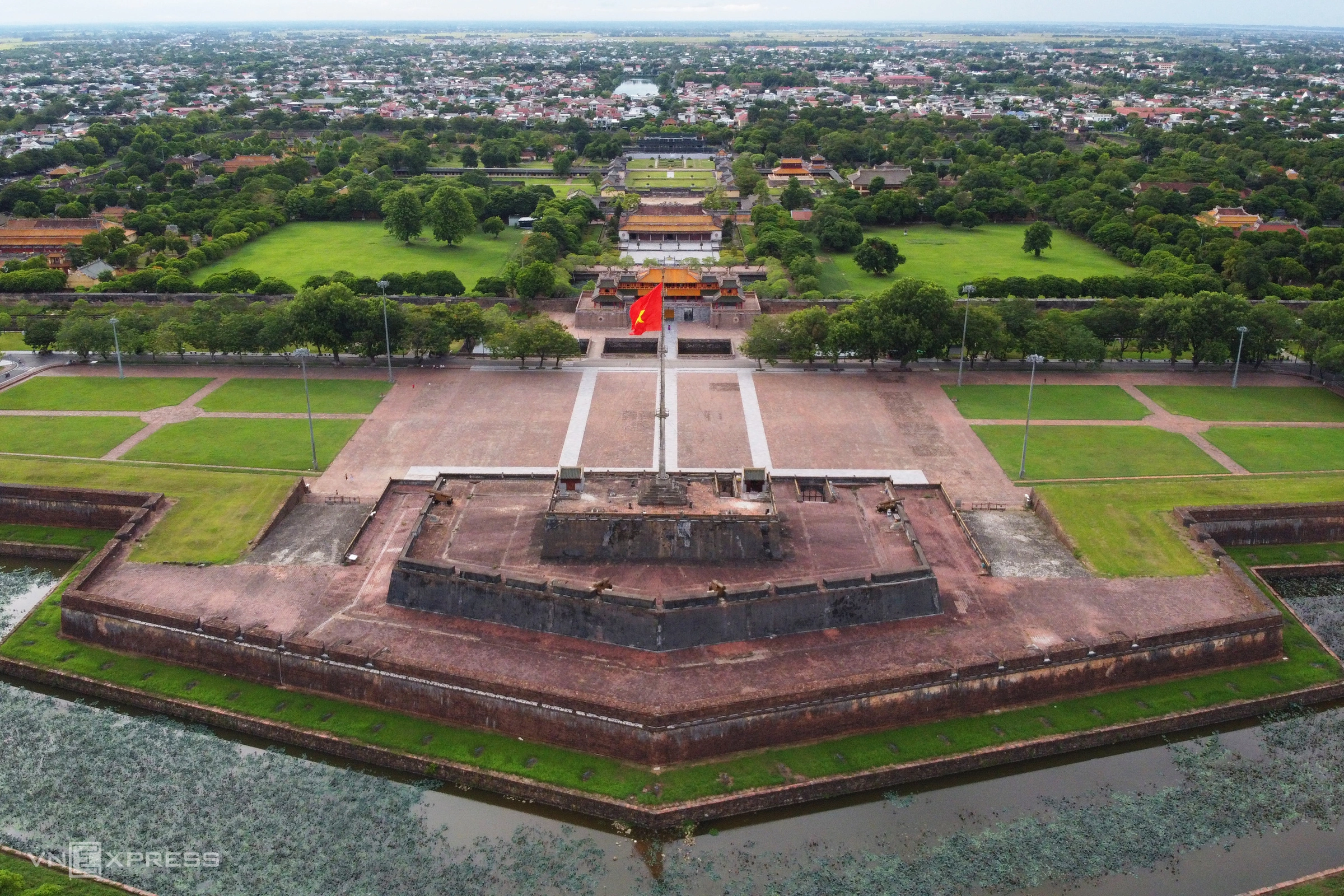 On the VnExpress Marathon course, taking place on 19/4, runners will spot the flag fluttering atop Ky Dai from various sections along Le Duan and around the Imperial City area. This image is not just a visual highlight but also evokes the sense of a historical center constantly present, like a red thread running through the entire race journey.