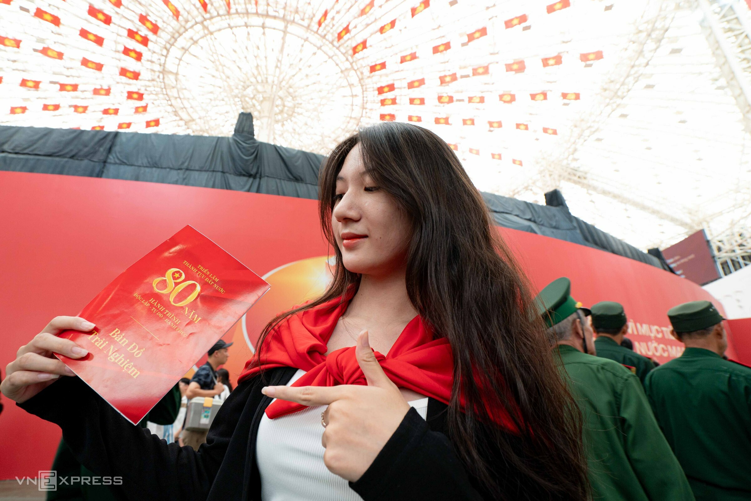 The "80 Years of Independence - Freedom - Happiness" exhibition in Dong Anh, extended until 15/9, attracts visitors not only for its exhibits and experiences but also for its artistic photo opportunities.