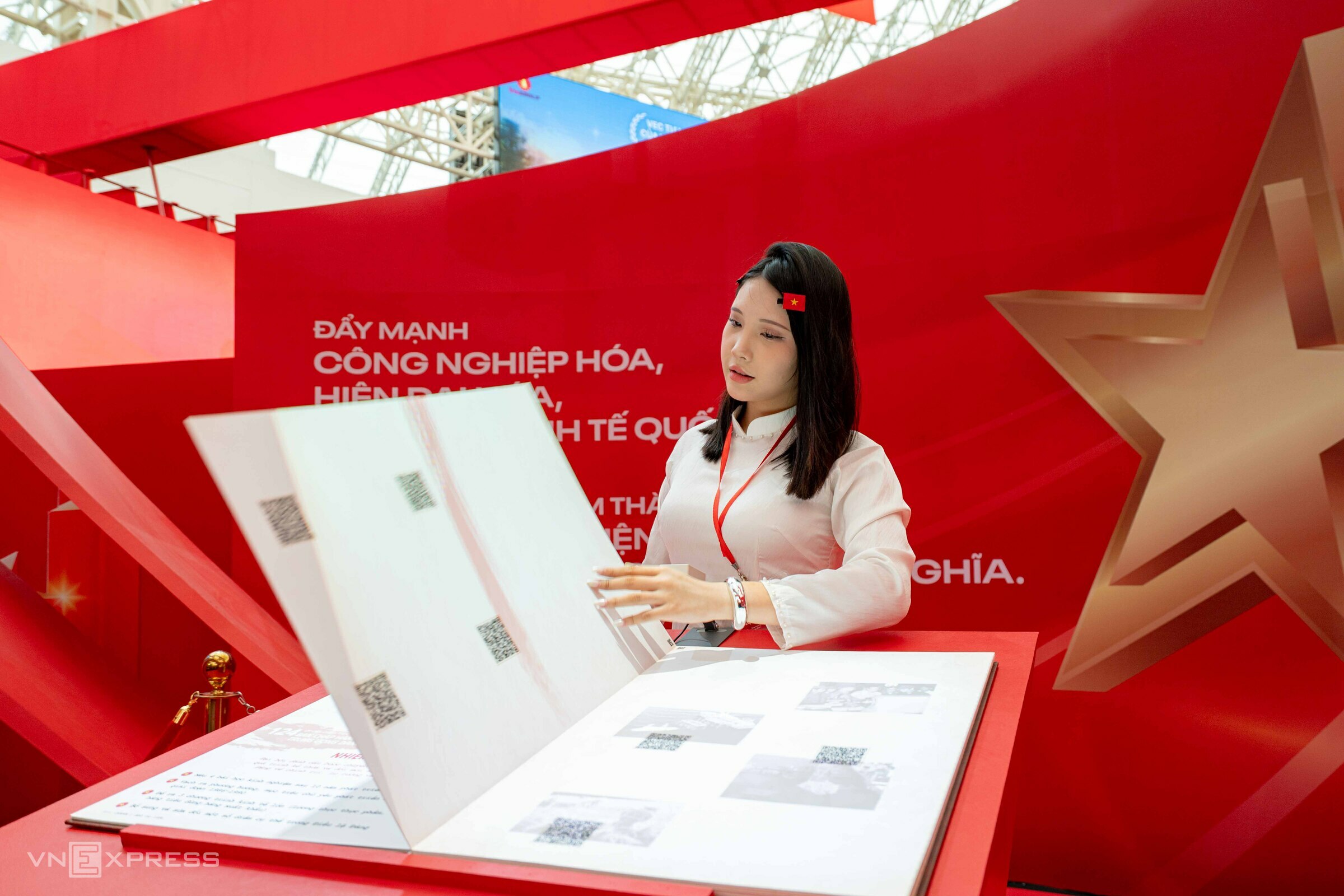 The giant Party History book is one of the most popular check-in spots. A tip for a great photo here is to wear white, especially an ao dai (traditional Vietnamese dress), to stand out against the red background. |