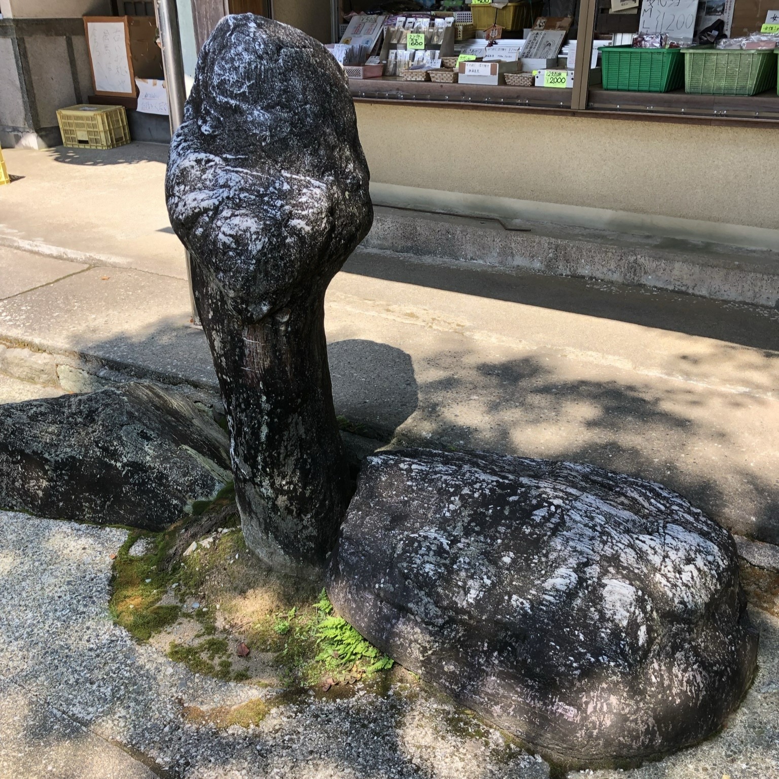 A statue resembling genitalia placed in front of the main hall. Photo: Tabirai