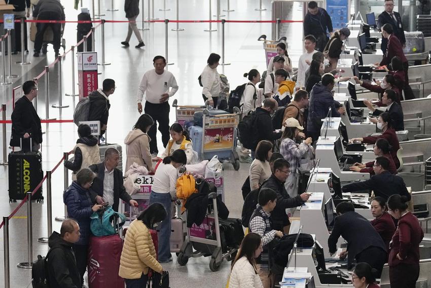Chinese passengers queue for check-in at Beijing Capital International Airport, China on 17/11. *Kyodo* |