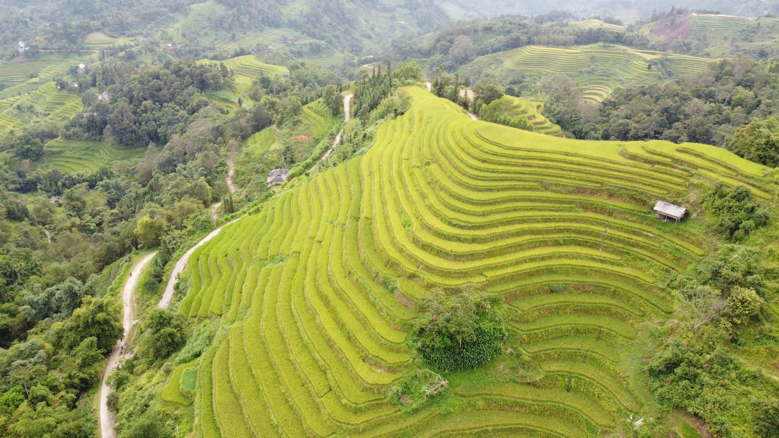 This year's rice crop has ripened unevenly due to variations in planting times. Currently, a single hillside can display shades of green, yellow, and already-harvested patches. "This extends the tourism season, allowing visitors to enjoy the scenery from now until the end of October," a Mustgo representative said.