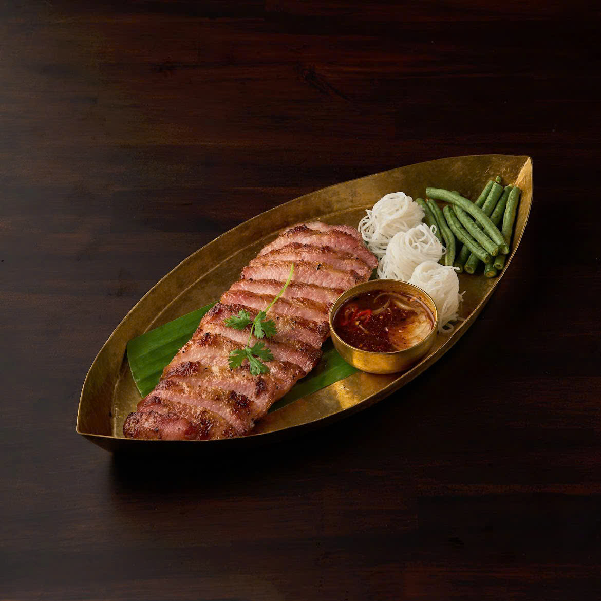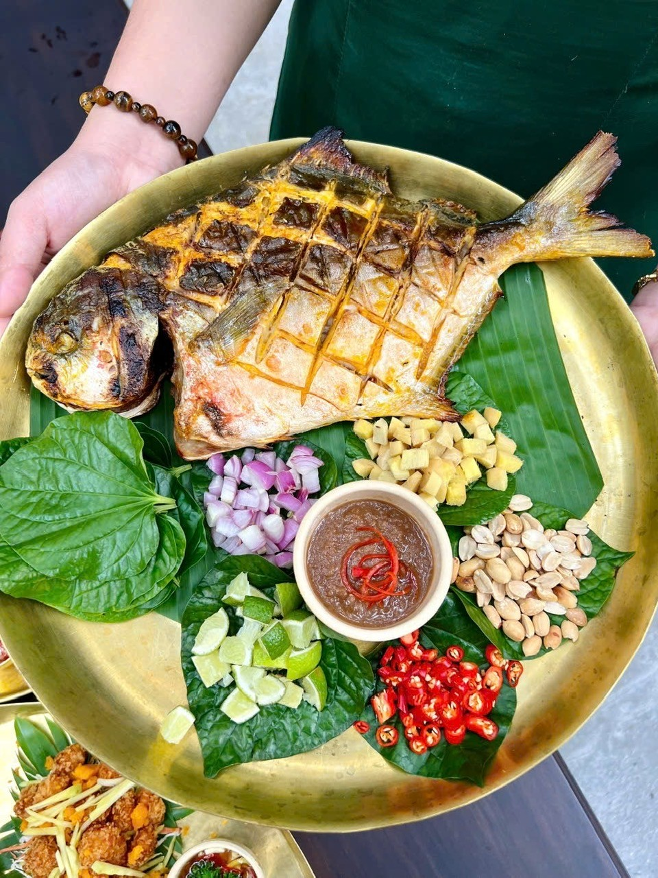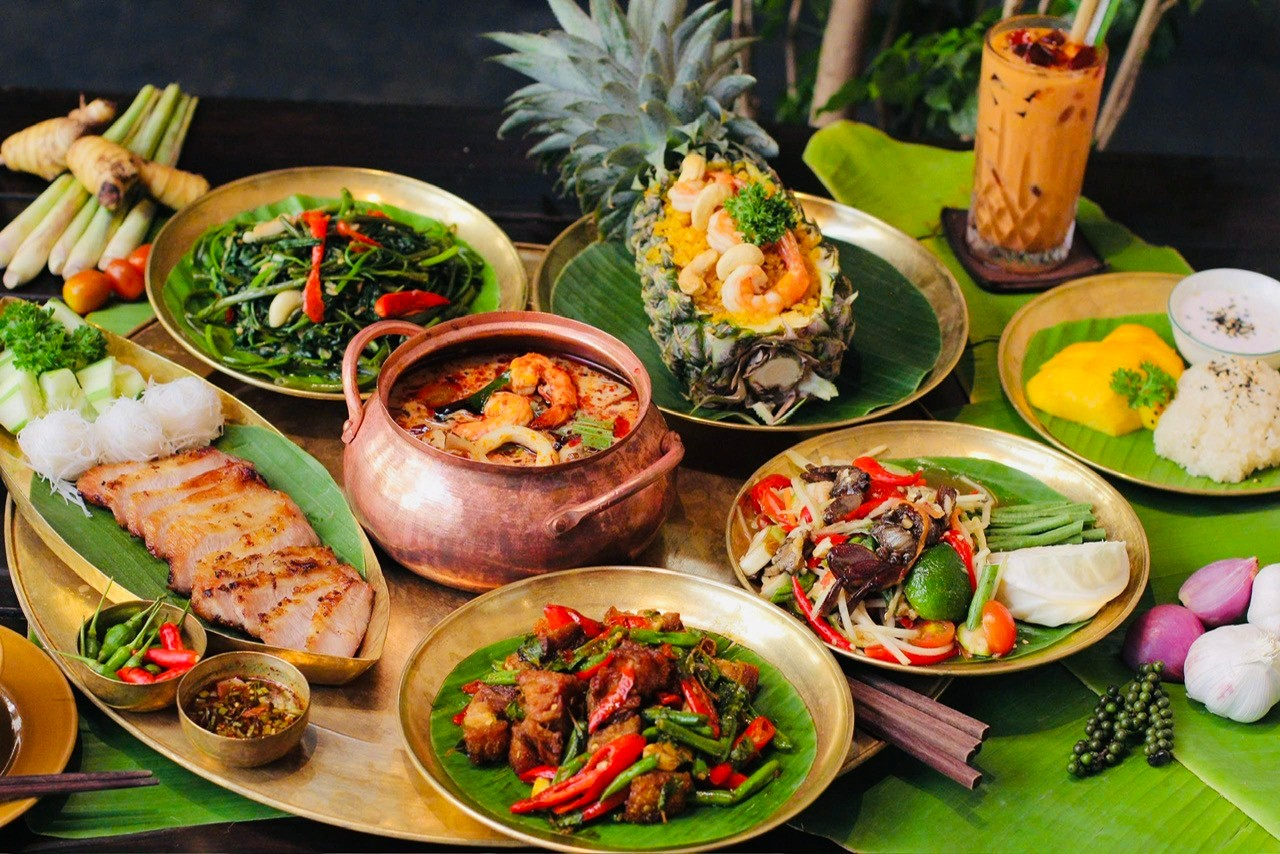 From Thai cuisine, the grilled pork jowl with tamarind sauce is meticulously prepared. Each piece of meat has an ideal lean-to-fat ratio and a fragrant charcoal aroma, which, when dipped in the characteristic sour and spicy tamarind sauce, can easily satisfy any palate. Additionally, creative dishes such as five-color grilled pomfret or grilled ethnic pork served with a sour and spicy salad also offer unique flavors. |