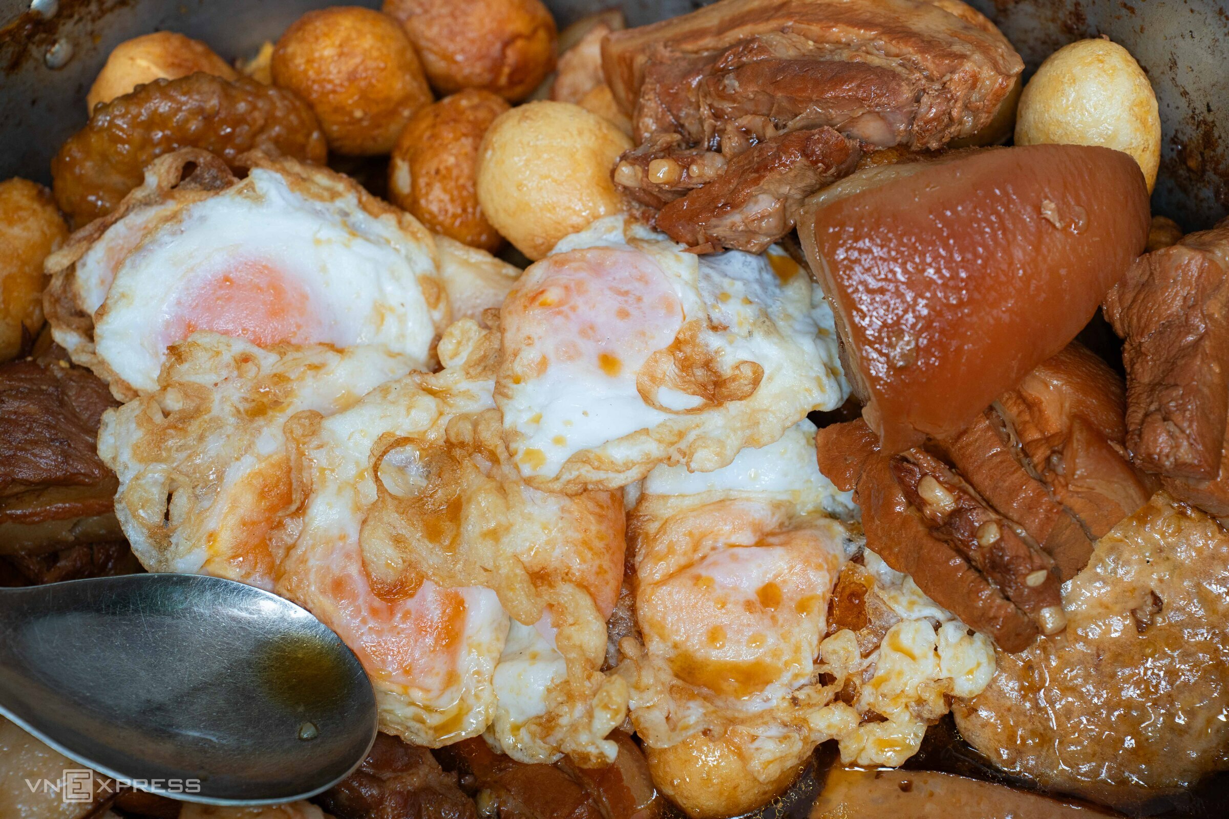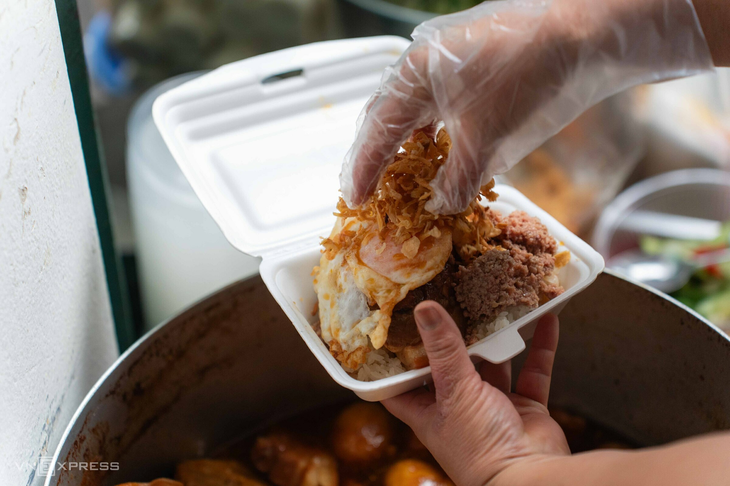 "This owner is exceptionally generous," he said. According to Viet, many people think the sticky rice stall is expensive, but after trying it, they realize it's "completely worth it." He noted that there's still plenty of topping even at the bottom of the bowl, sometimes keeping him full for half a day. Each week, Viet visits the stall three or four times.