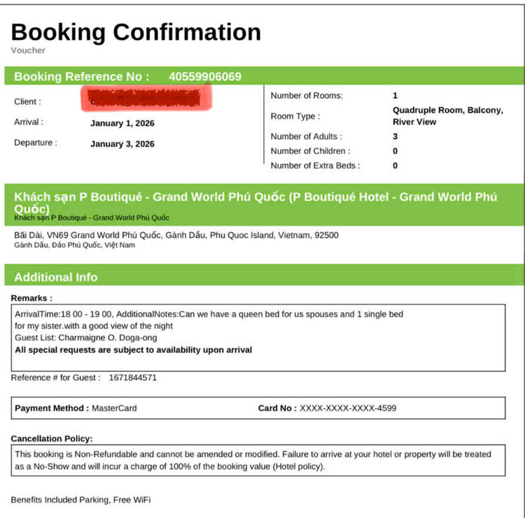 While en route to the airport for her flight to Phu Quoc, the female tourist received an email from the accommodation stating they had no record of her booking.