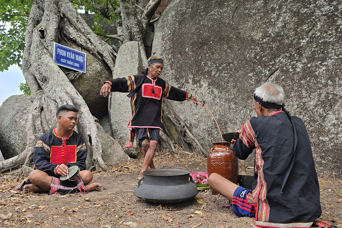 On 25/4, Siu Pho and Rolan Hieo, two assistants to the 14th Fire King Yang Potao Apui, performed a rain-calling ritual. They were joined by the council of village elders and supporting artists. The ceremony took place on the peak of the "sacred mountain" Chu Tao Yang, located within the Plei Oi National Historical-Cultural Site in Chu A Thai commune.