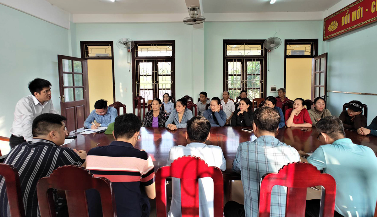 Commune Chairman Phan Hai Ha works with businesses to commit to no harassment or sidewalk encroachment. Photo: Phong Nha Commune. |