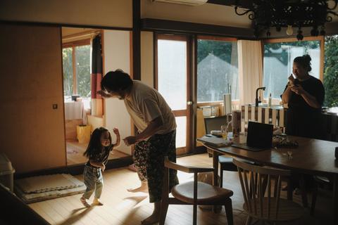 Sean Gwee and Ashley Hong with their daughter in their Japanese home. Photo: The Straits Times |