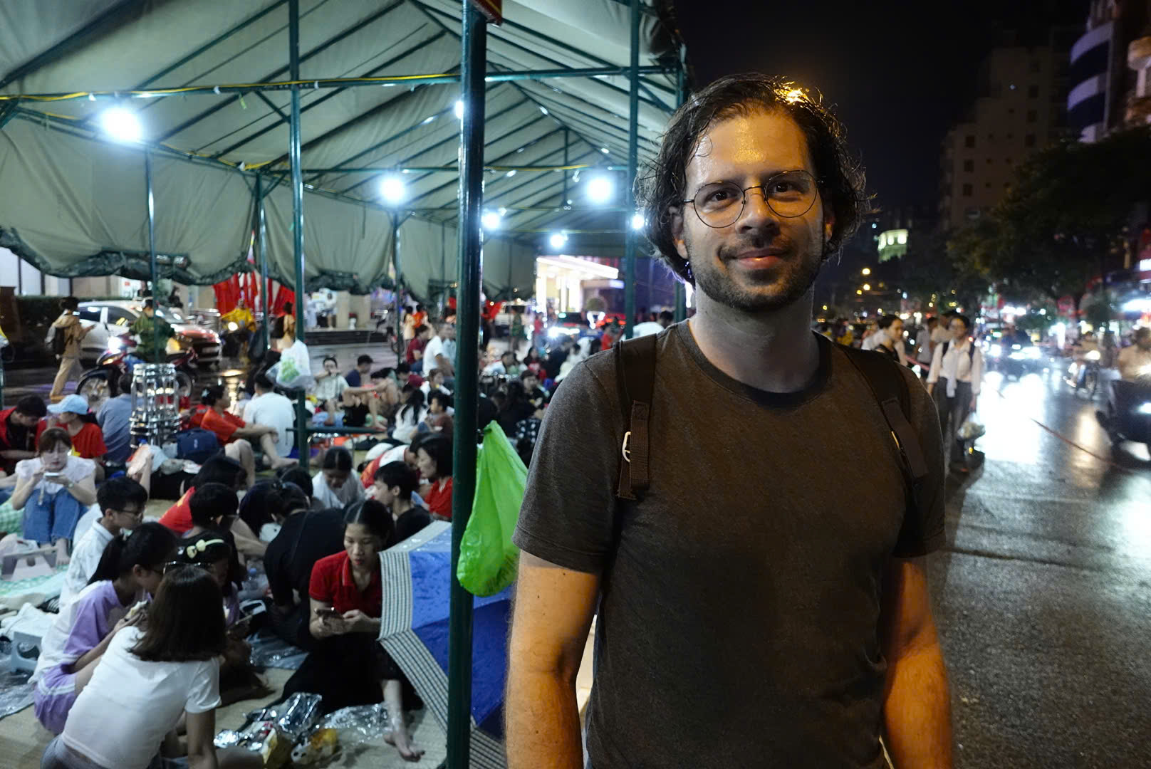 Not only locals but also international tourists were caught up in the excitement leading up to National Day. Rudolph, a German tourist staying at a hotel a 10-minute walk from Hanoi Railway Station, said he had been in the capital for five days and had heard about the parade. He planned to watch it on the morning of 30/8 but hadn't intended to stay overnight like the others. He planned to return to his hotel and come back at 5 a.m. Upon hearing that "only those who stay overnight have a chance," Rudolph was somewhat disappointed but decided to try his luck in the morning.