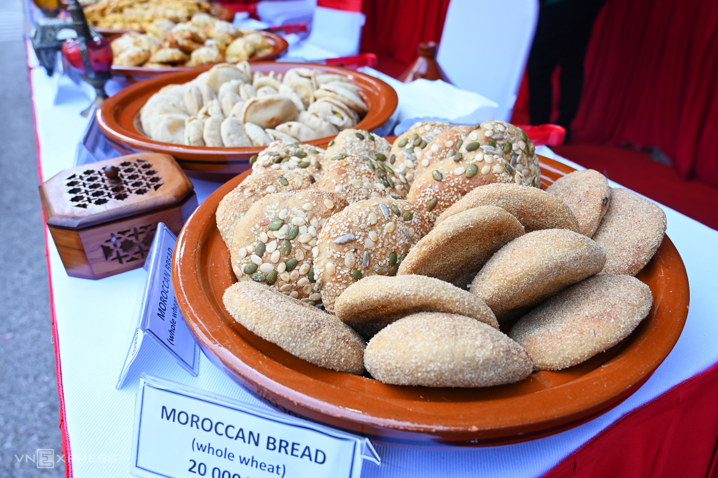 Traditional Moroccan bread and other pastries are available for visitors to enjoy at the fair. |