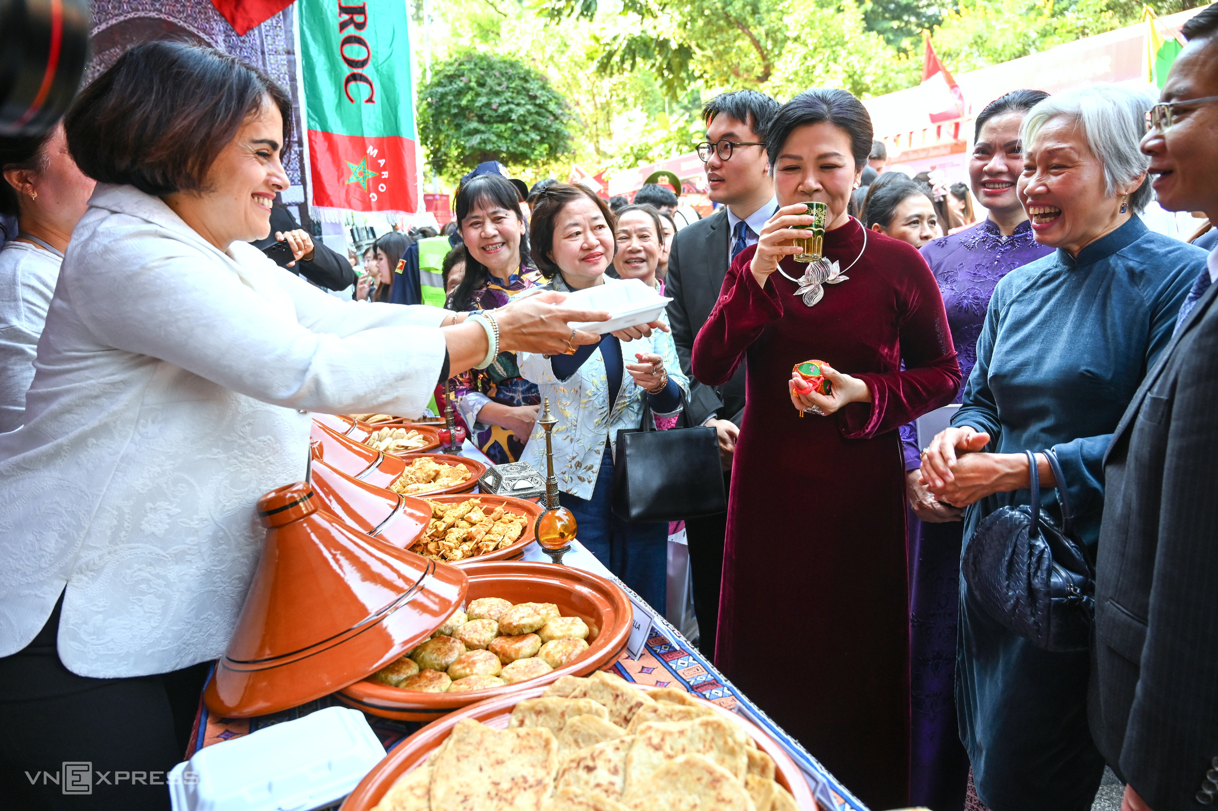 At the Moroccan booth, Ngo Phuong Ly experiences mint tea, a culinary pride of the nation. |