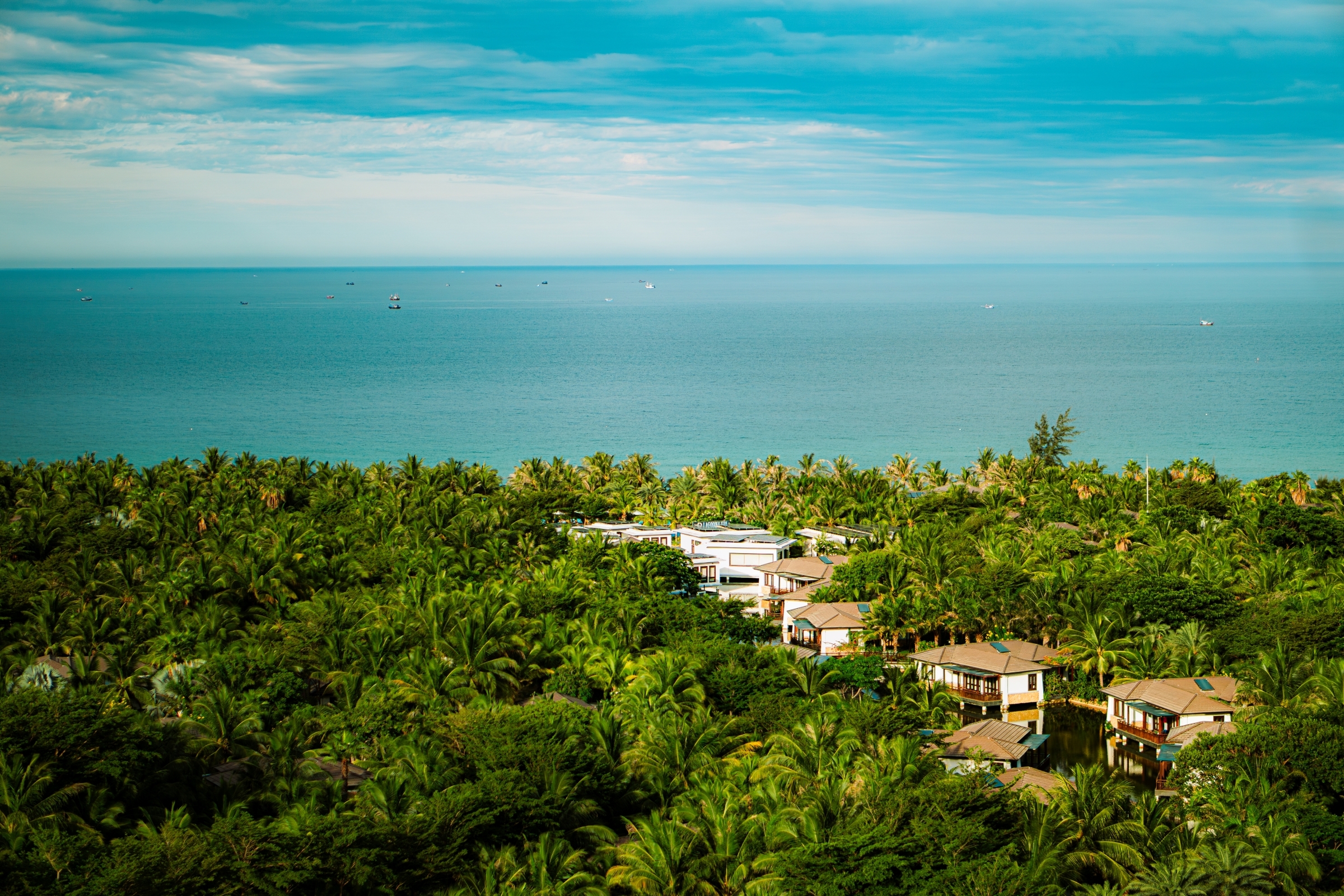 An aerial view of the resort with a high proportion of greenery and a long private beach. Photo: Duyen Ha Resort