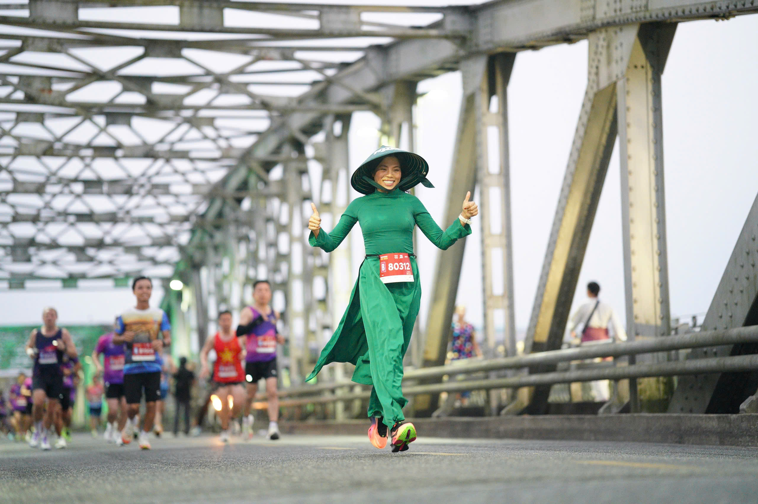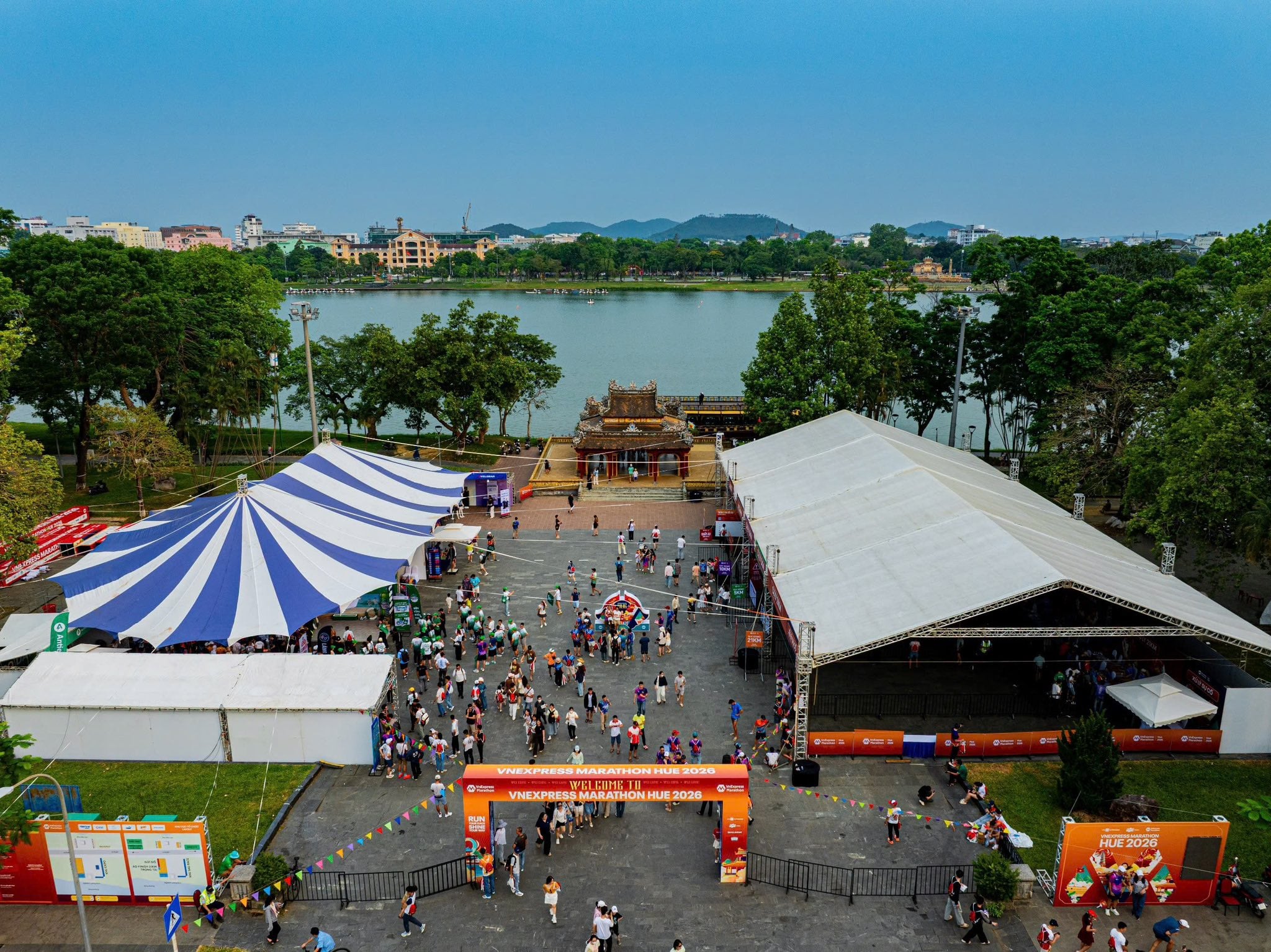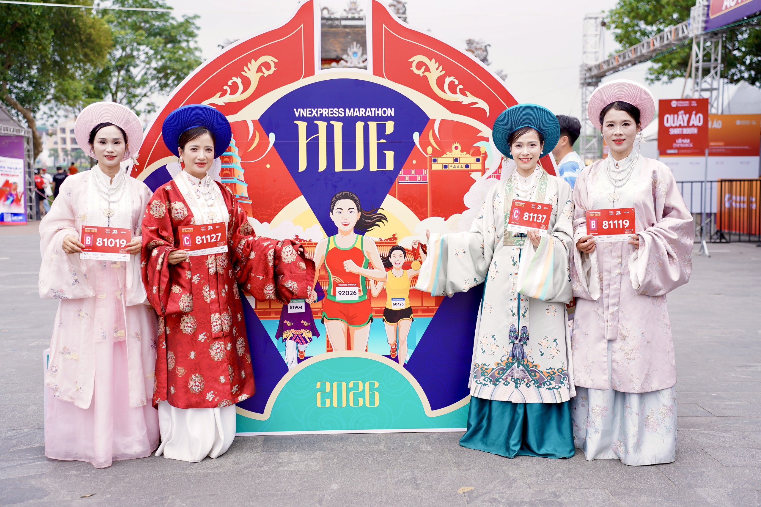 VnExpress Marathon Hue 2026 was not just a sporting competition but also a preservation of cultural imprints throughout the journey. From the Expo area by the Perfume River, images of runners in traditional attire, iconic structures along the course, to the khanh-shaped finisher medal, the event contributed to promoting Hue's image to a large number of athletes and tourists.