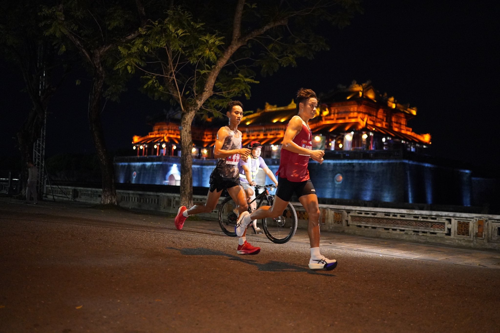 The Hue Imperial City glowed brightly alongside the race course, forming a prominent backdrop for the athletes' journey. For this year's 21km distance, runners traversed all four sides of the Imperial City, creating the most distinctive highlight of the course.