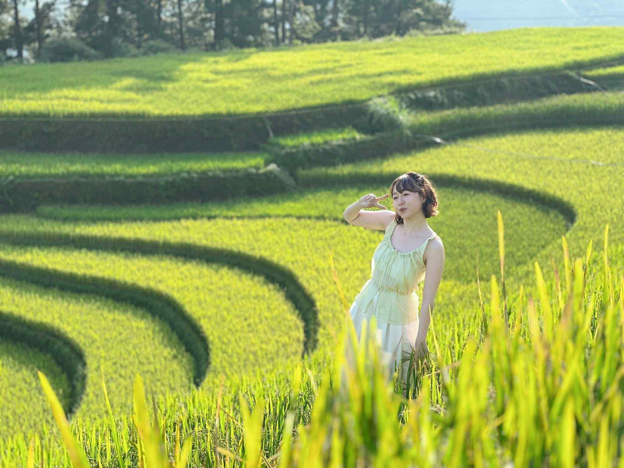 Kim Yen checks in at Mu Cang Chai's terraced fields on 19/9. Photo: NVCC |