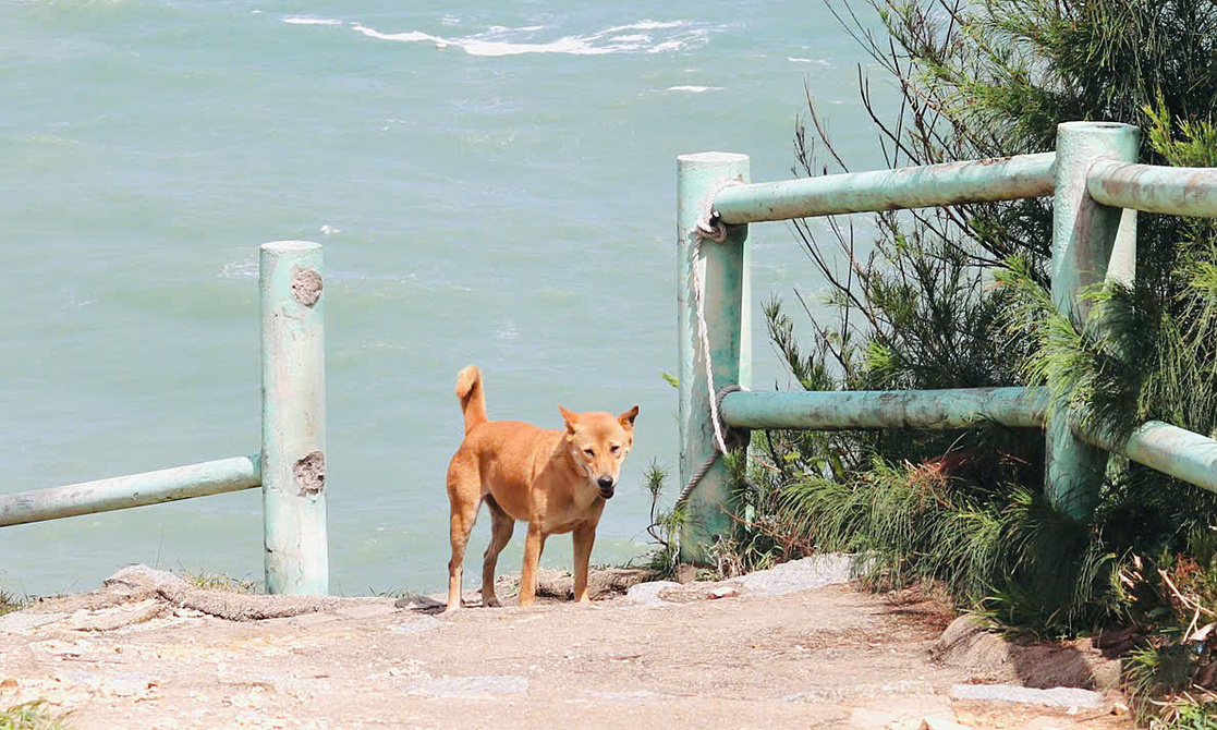 The golden dog guiding Quynh's group down to Bai Mon. Photo: Quynh Ngo