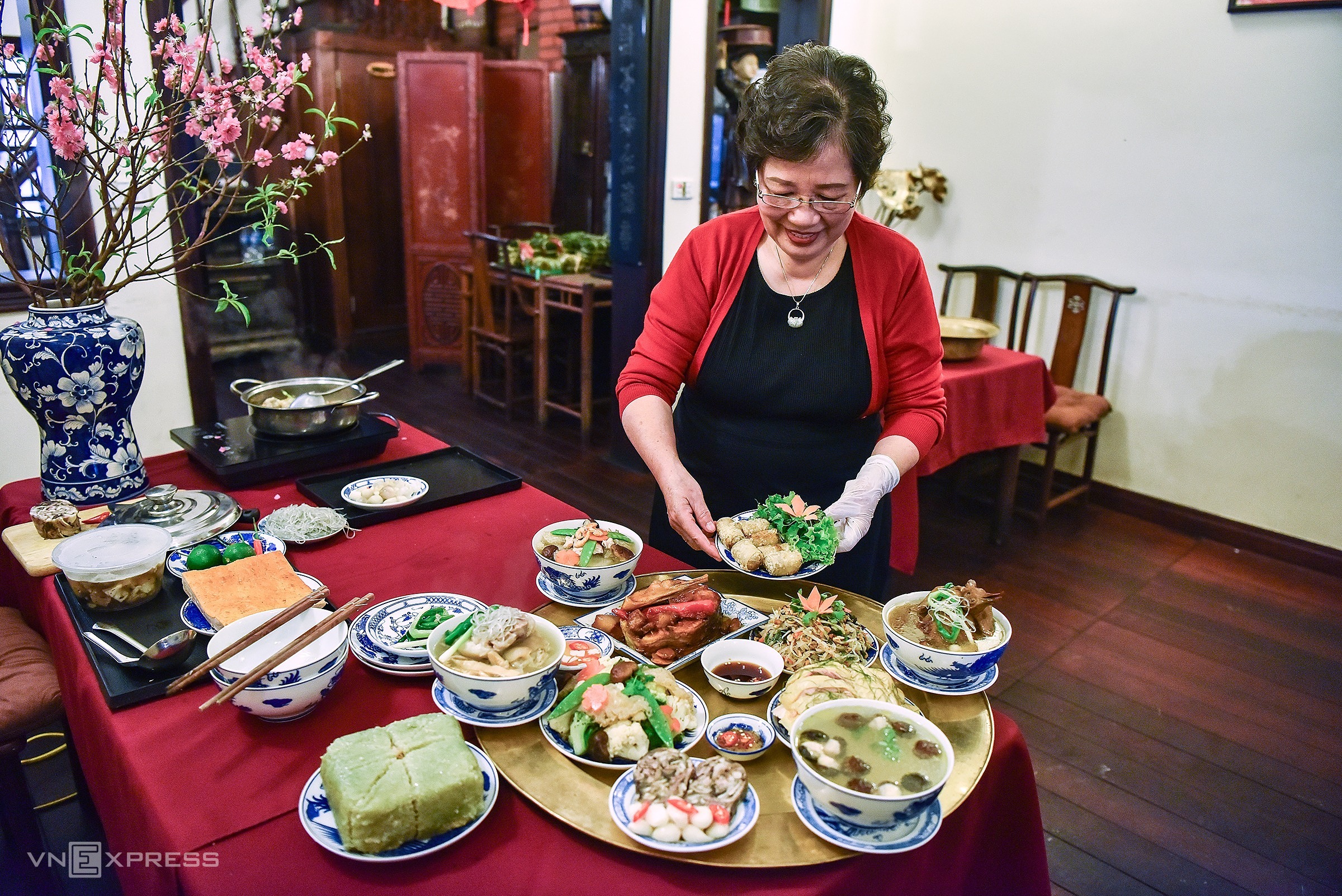 Artisan Anh Tuyet prepares a traditional Hanoi Tet feast. *Photo: Giang Huy* |