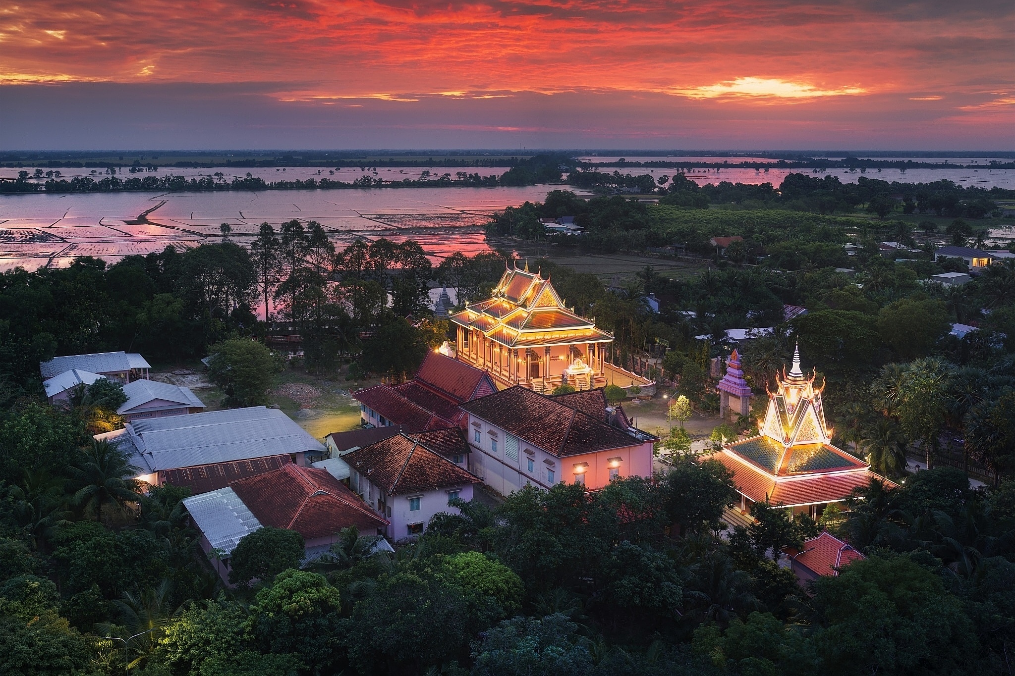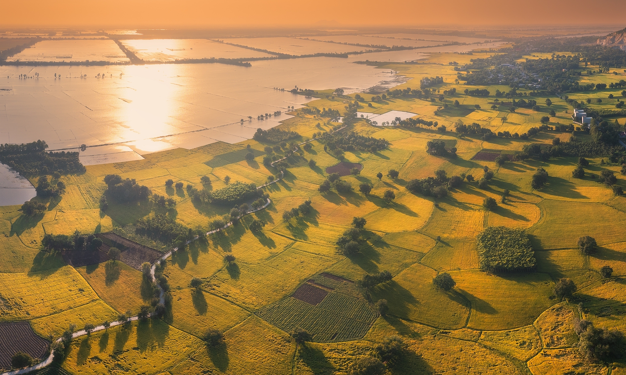 Situated in a transitional geographical zone, Ta Pa's landscape is a mix of rice fields, tram trees, sugar palm rows, ponds, lakes, and rocky mountains. The area's appearance shifts seasonally, from floodwaters bringing alluvial deposits to fields of golden ripe rice, and eventually to brown fields after harvest.