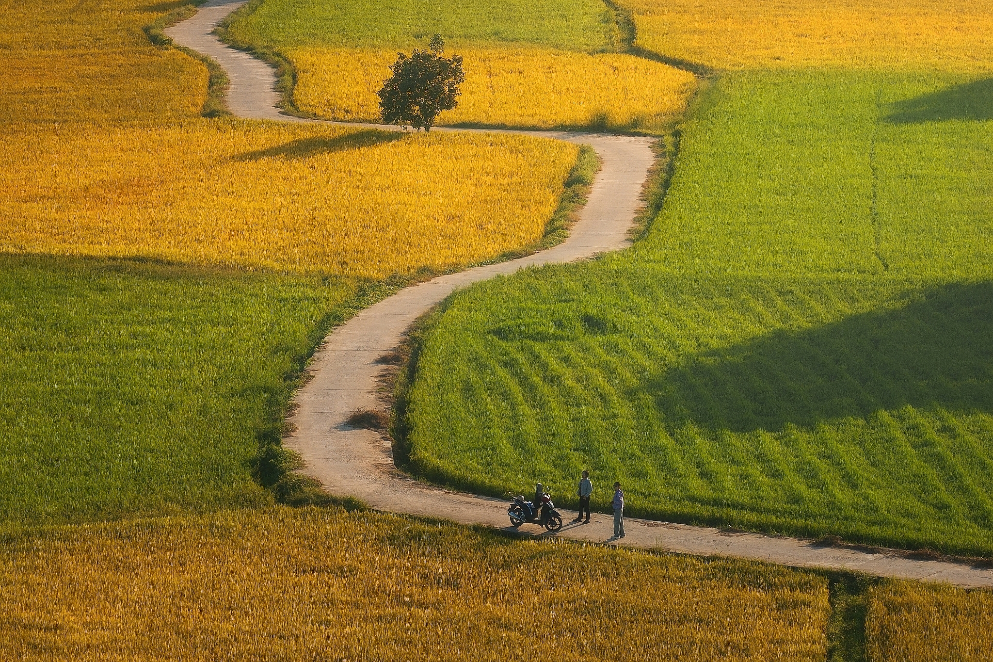 Nhan particularly cherishes the moment the early sun illuminates the entire field, making it glow golden "as if coated in honey." This transformative light also "awakens" early morning photographers, allowing them to directly witness the landscape's shift.
