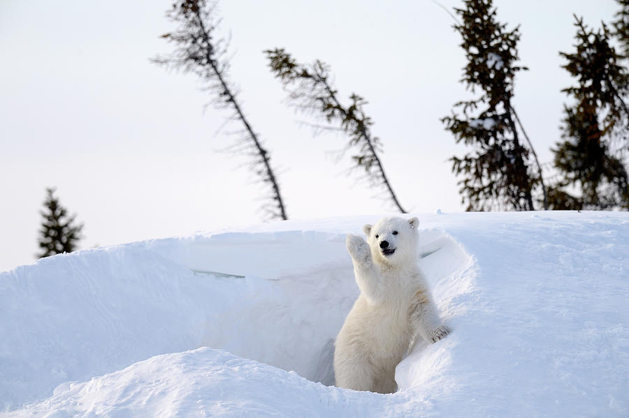 A polar bear plays in the snow in Churchill. Photo: Fine art America |