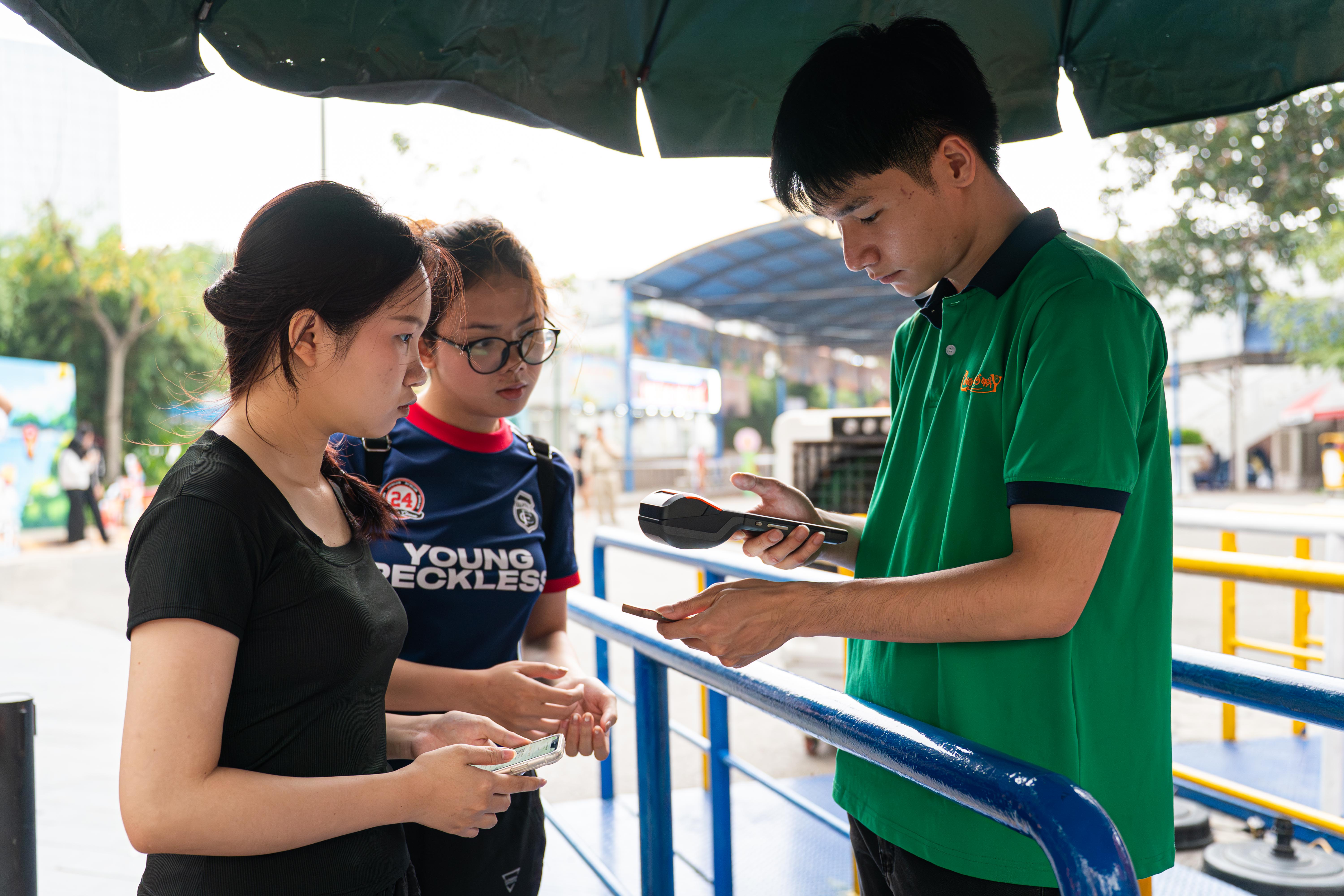 To mark its opening, the park is offering special promotions. From 19/4 to 24/4, a flat ticket price of 150.000 dong is available for all visitors taller than 0,9 m. Phuong Trinh, 19, from Ba Dinh ward, arrived at the water park at 16h, having purchased her ticket online to save time. "Today, the discounted ticket price is very low, so after school, my friend and I took the opportunity to come and experience it", Trinh said.
