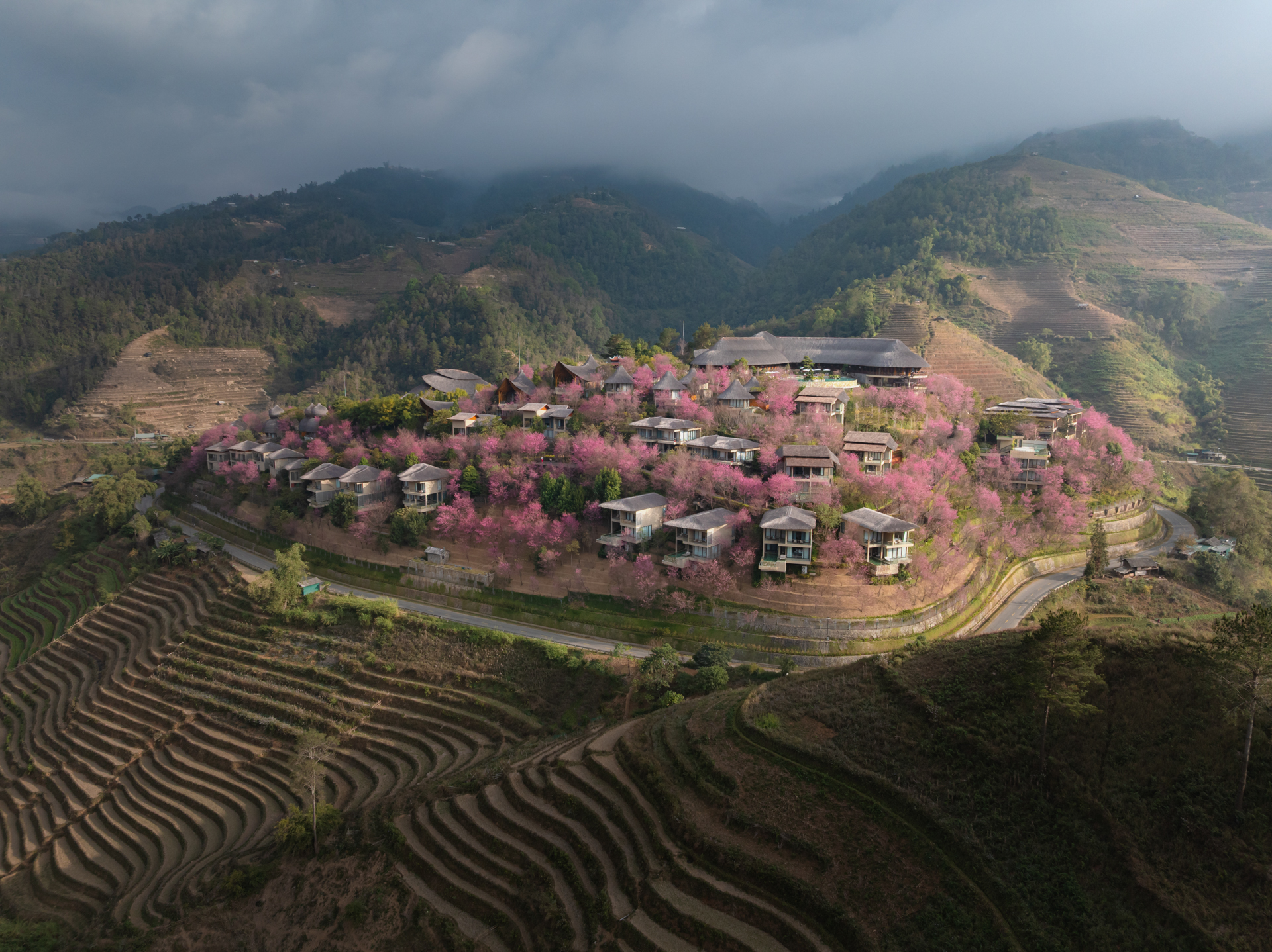 To day flowers bloom profusely within the grounds of a resort in Mu Cang Chai. Visitors to Mu Cang Chai have the opportunity to experience the three most beautiful seasonal landscapes of the year: to day flower season (January-February), rice transplanting season (April-May), and ripe rice season (September-October).