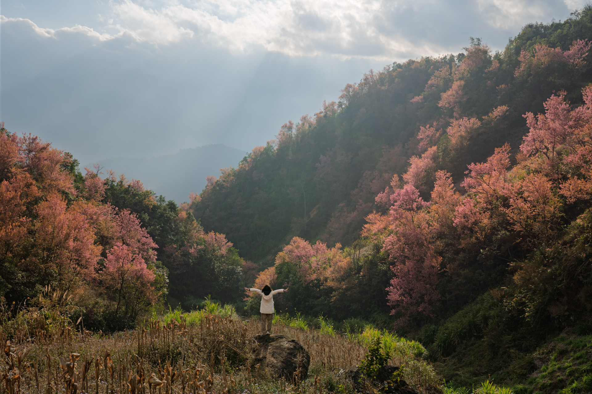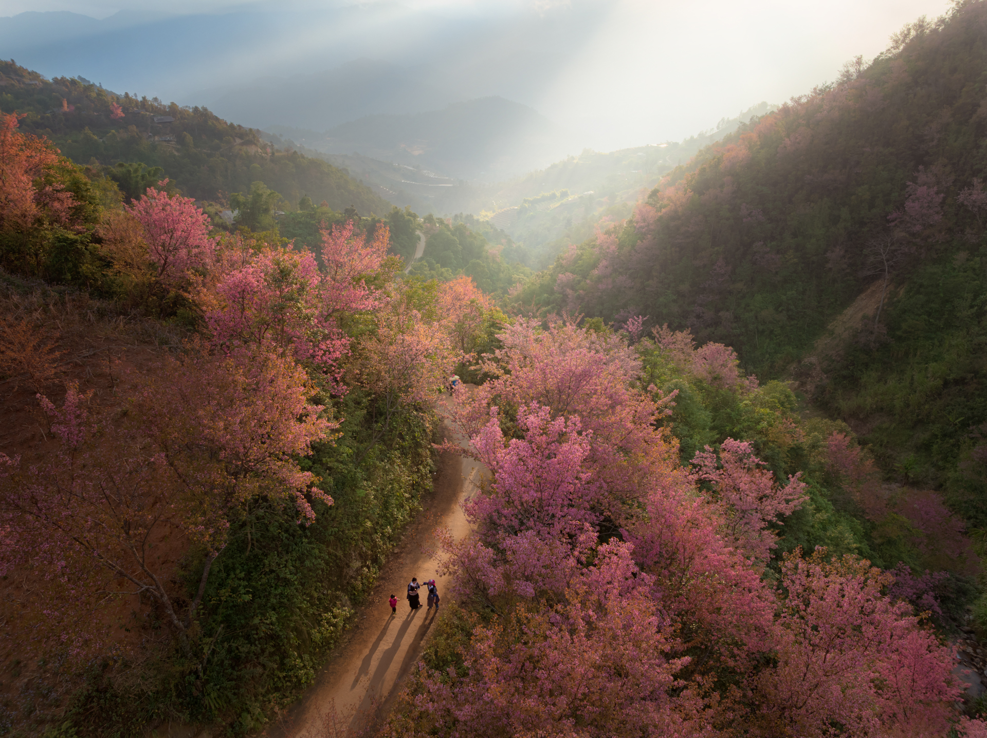 During his two days in Mu Cang Chai, Vinh encountered cloudy skies, which subdued the flowers' pink hue. He patiently "waited for clouds, waited for sun" for hours to find the perfect moment to shoot. "It's like a reward for those who are patient enough," Vinh said, referring to one of his favorite photos.