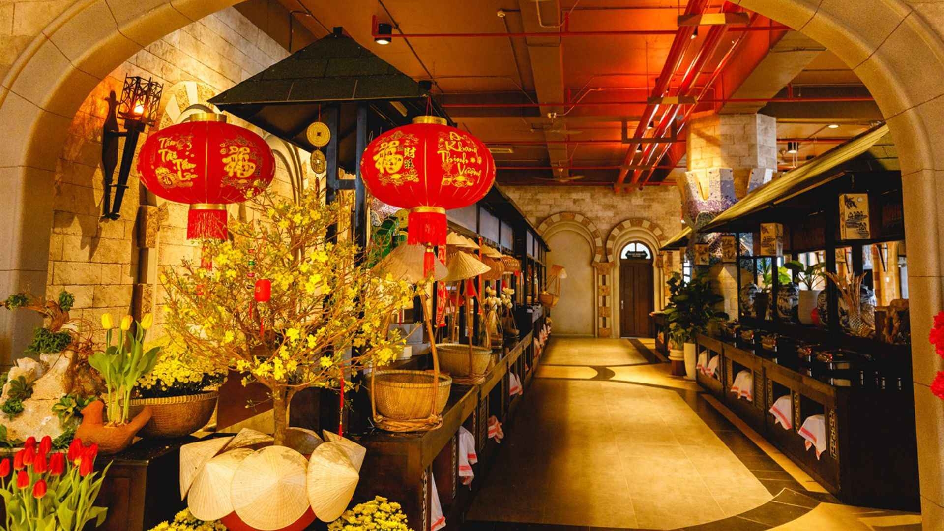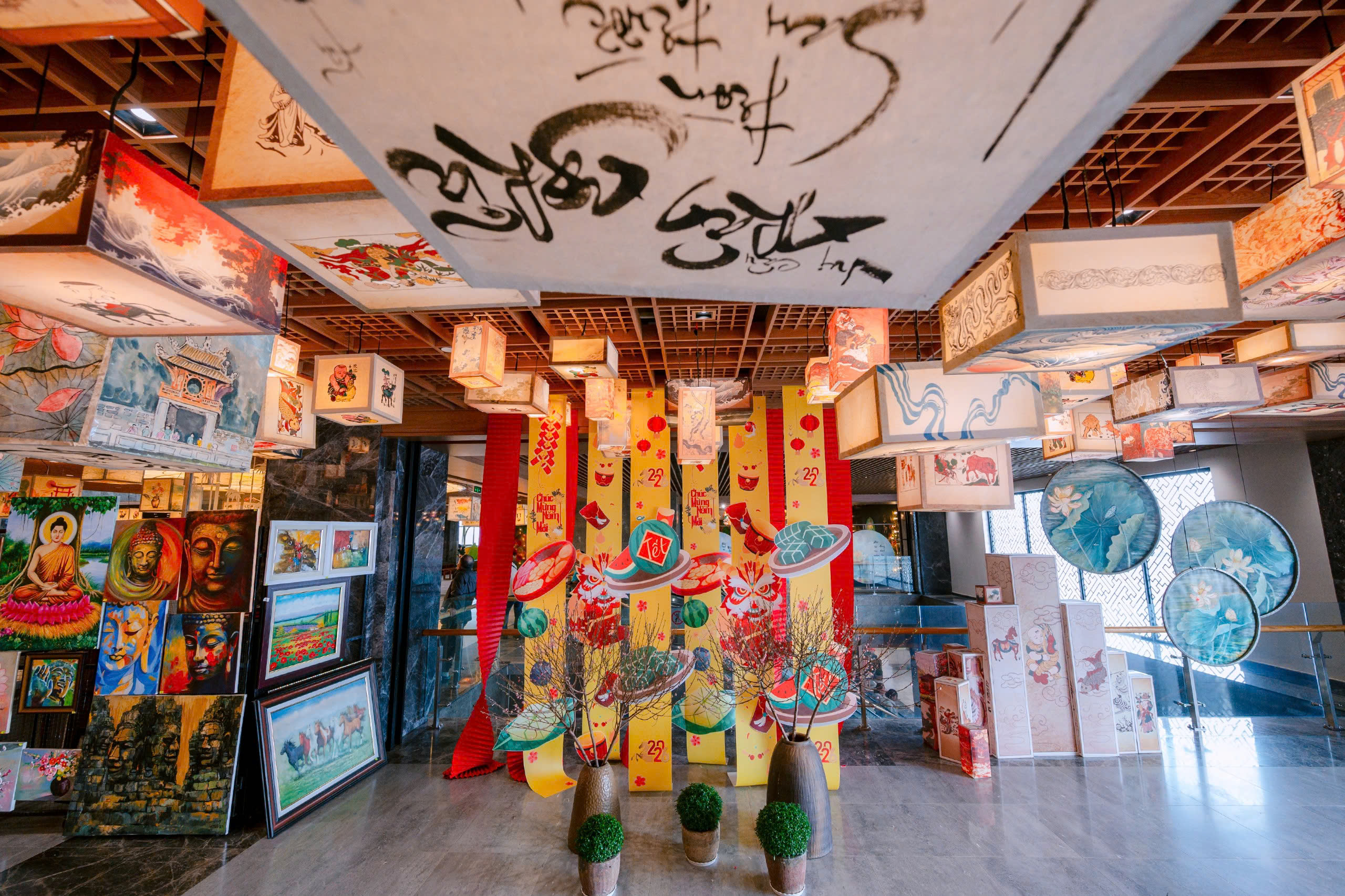Many miniature landscapes with traditional Tet flavors are arranged throughout the mountain peak area. From the lantern zone and calligraphy corners for new year wishes to vibrant lion and dragon dance models, each stop attracts many visitors to take photos and preserve memories.