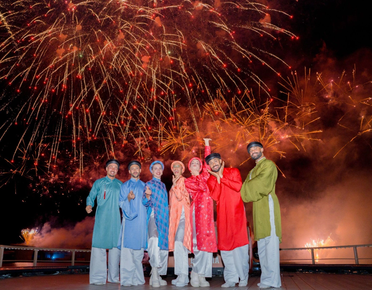 Tourists checking in and watching fireworks in Phu Quoc. Photo: *Sun Group*. |
