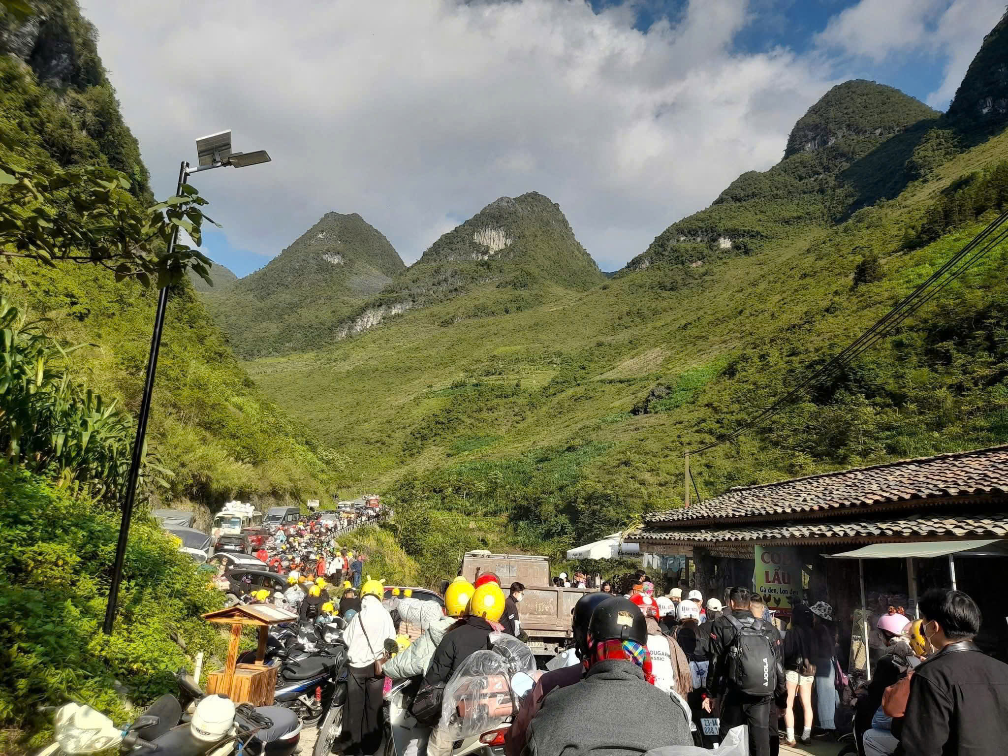 Nguyen Tuan Son, a tour guide, stated that his convoy took nearly two hours to travel 20 km from Yen Minh to Quan Ba. "Just one car stopping for a photo causes the entire convoy behind to be stuck, unable to move," Son said.