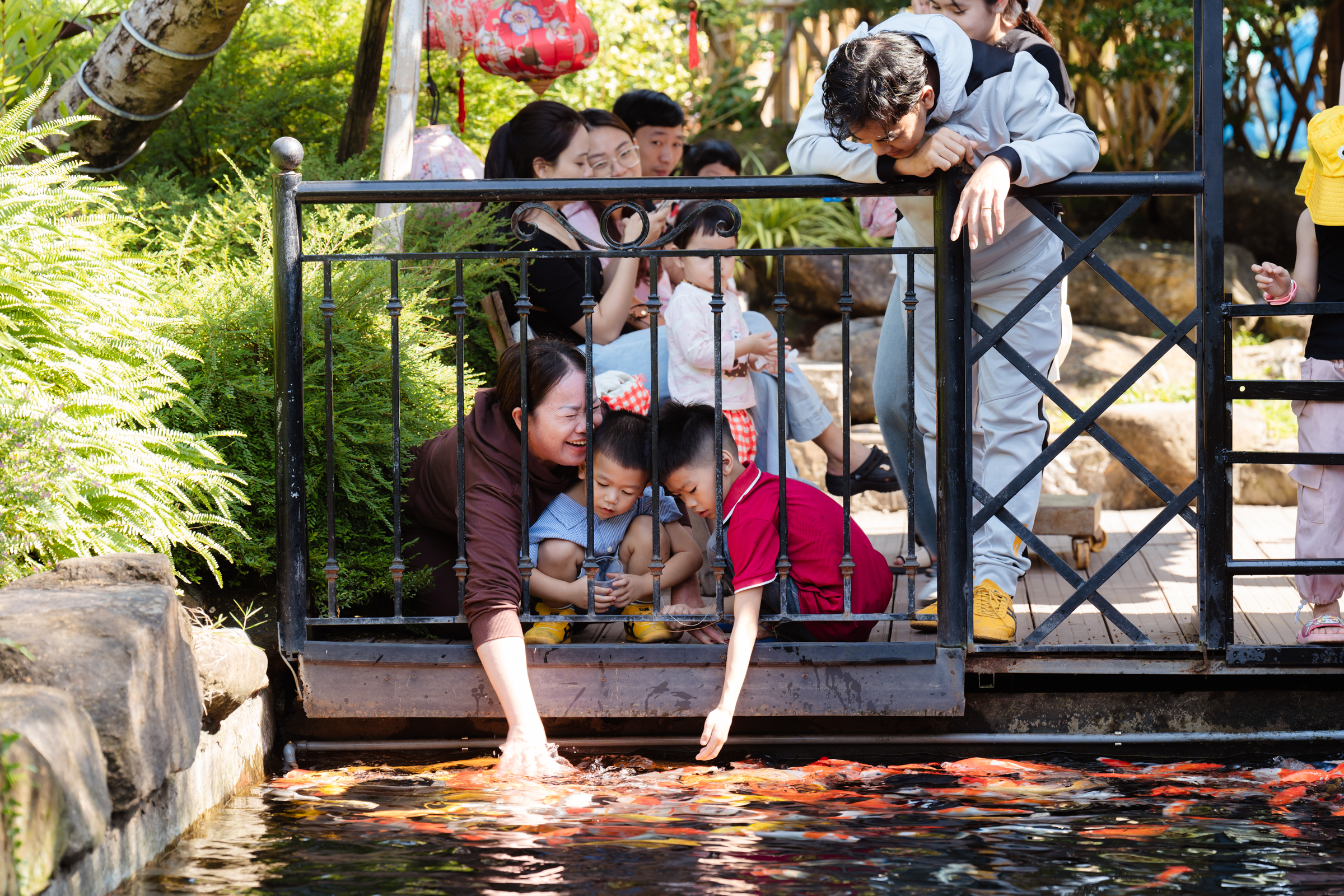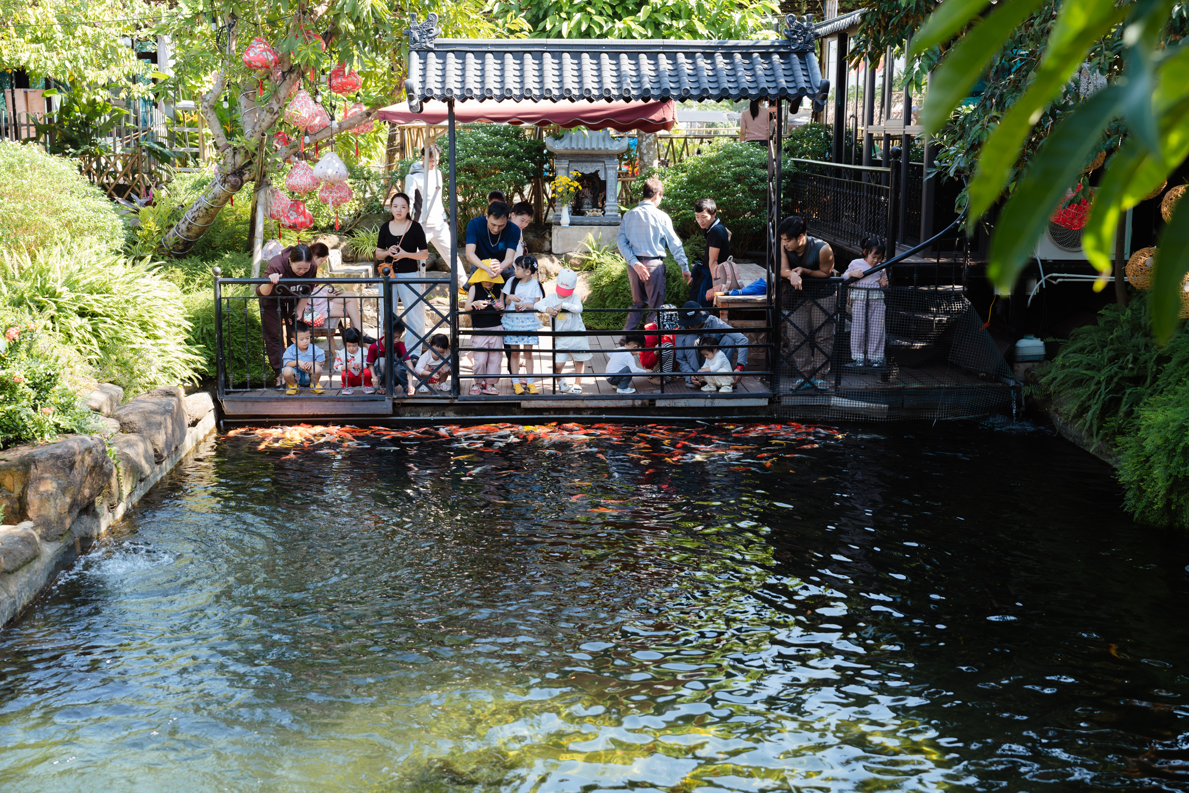 Additionally, the fish pond is a favorite play area for children. Urban children, for the first time, hold small bags of feed and scatter them onto the water.