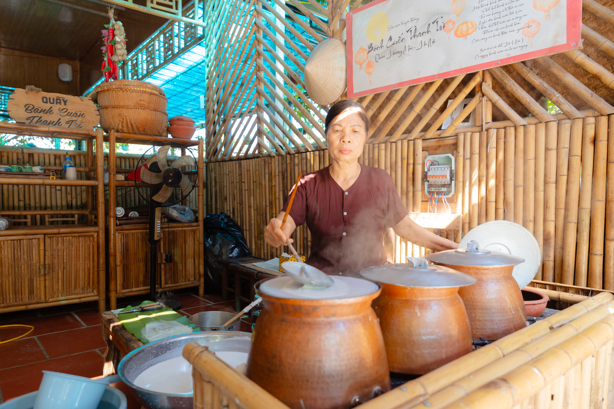 Visitors also have the opportunity to savor the local specialty, Thanh Tri rolled cake, a way to preserve and promote traditional culture.