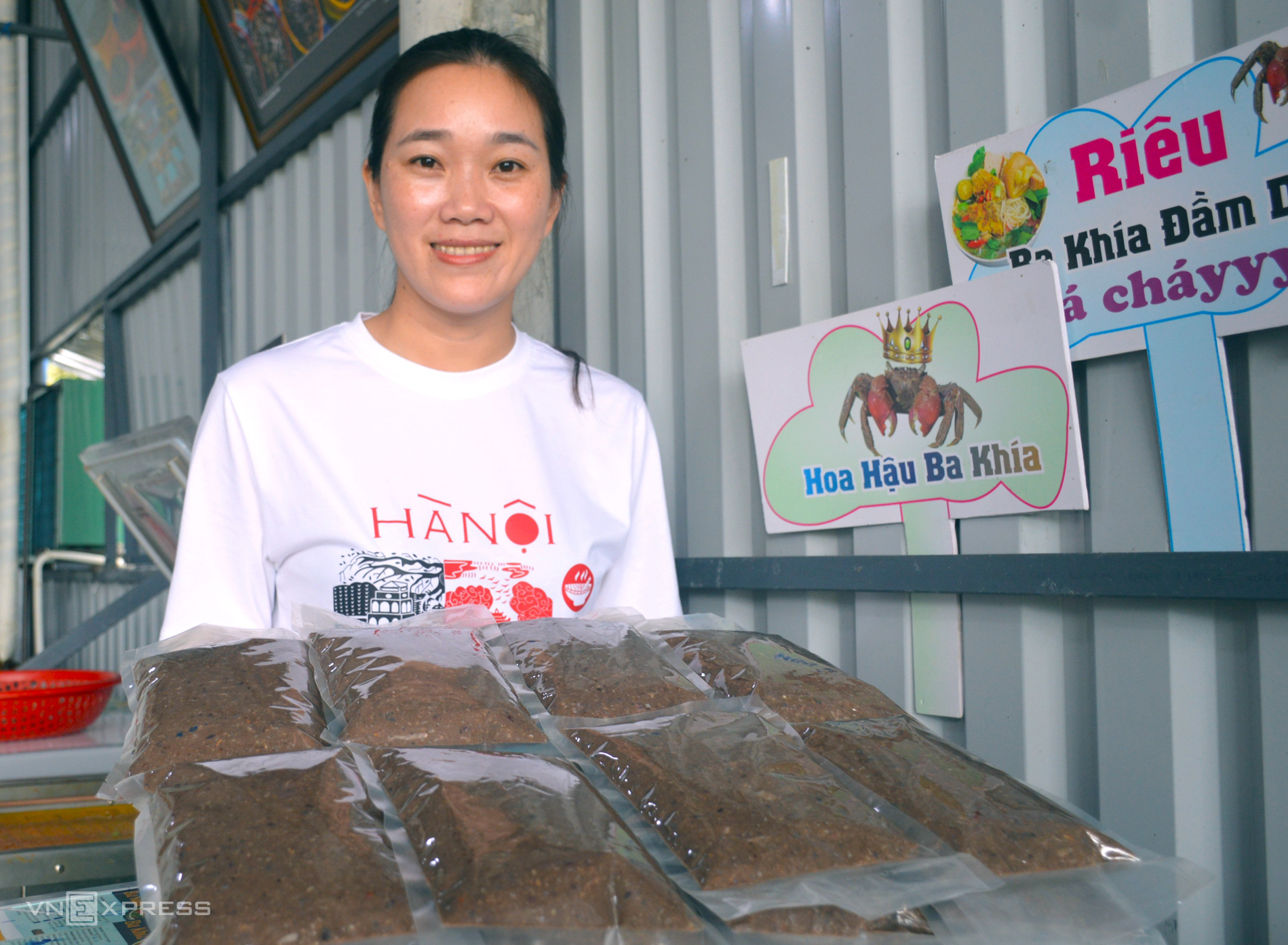 Around the 6th lunar month is the molting season for ba khia. These soft-shelled crabs are difficult to salt and preserve. Nguyen Van Mien and his wife, in Quach Pham commune, conceived the idea of grinding ba khia into *rieu*, similar to how blue crab paste is made.