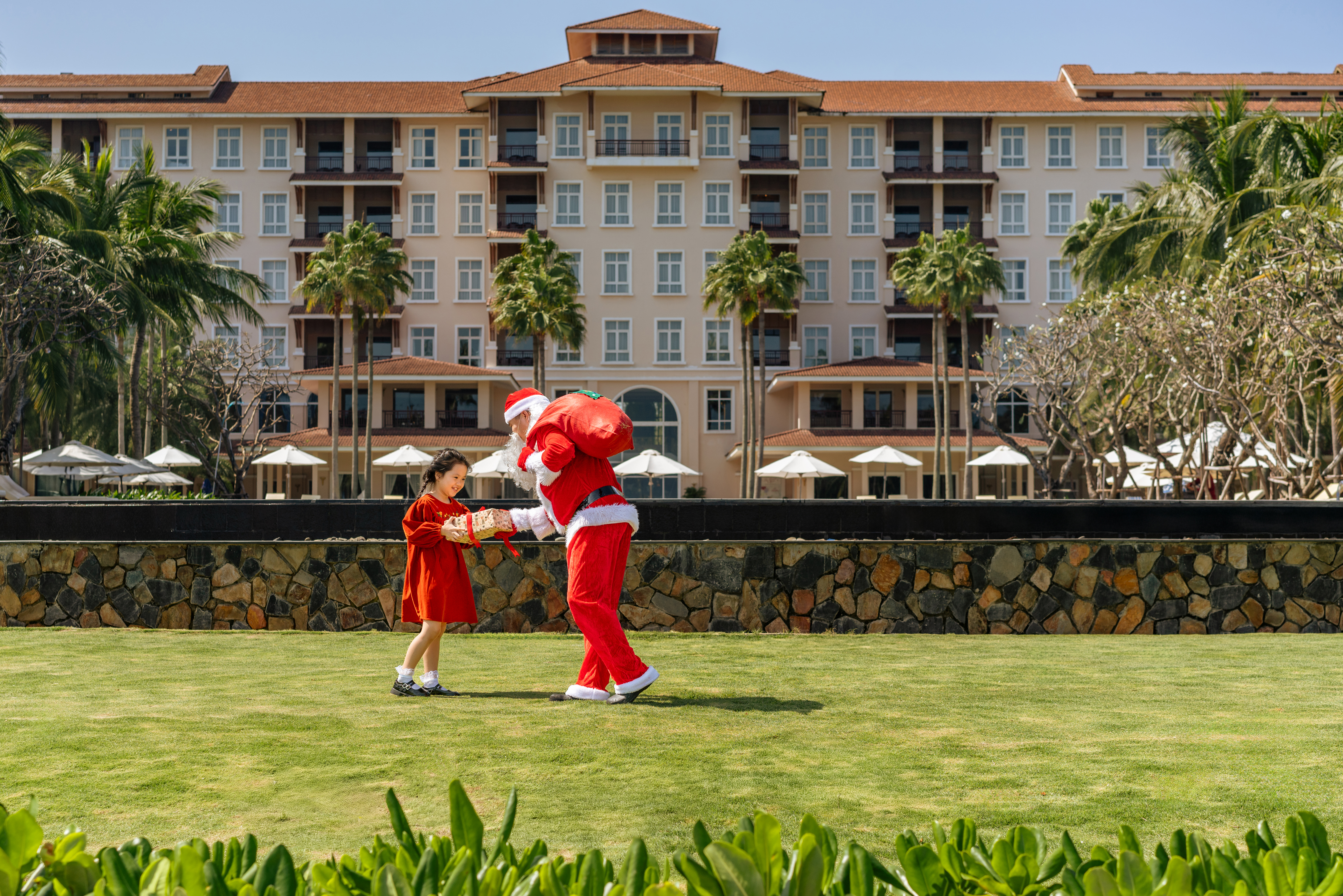 Danang Marriott Resort & Spa is hosting a "tropical christmas" festival. The resort's decorations feature elements of blue sea and white sand, alongside over 1,100 coconut trees throughout the property. This festive celebration includes a series of activities leading up to new year's eve, beginning with the christmas tree lighting ceremony on 5/12.