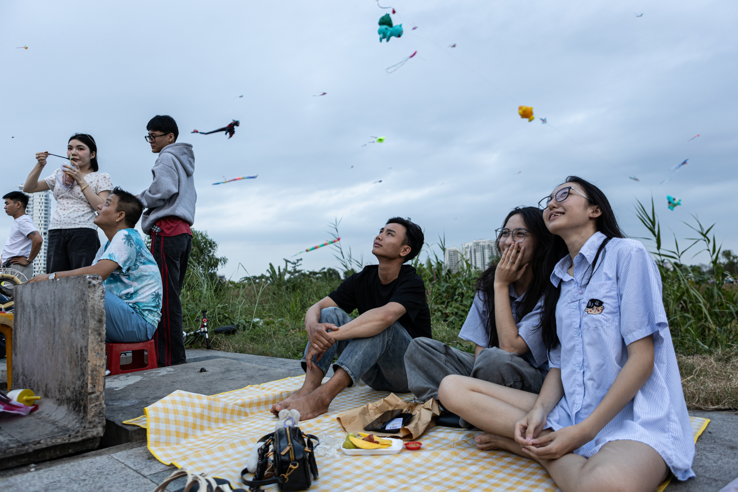 People fly kites in an open field near Ba Son Bridge. Photo: Khuong Nguyen |