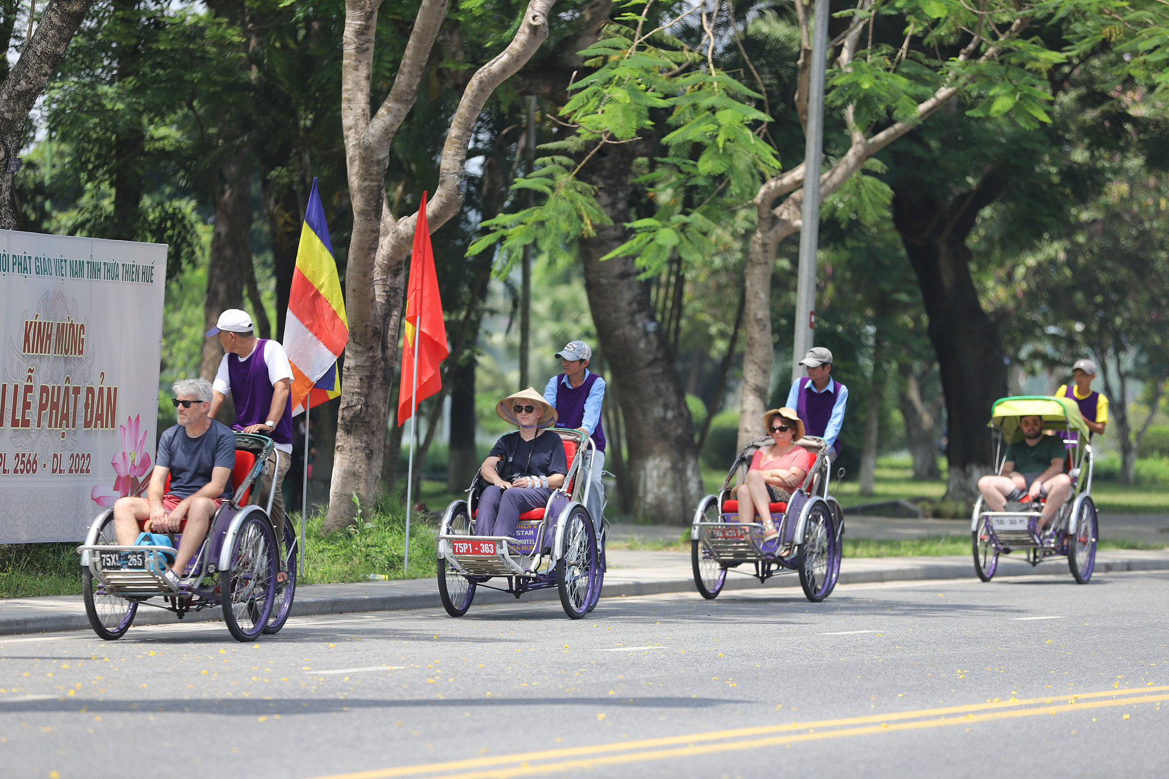 International tourists explore Hue city by cyclo. Photo: Vo Thanh