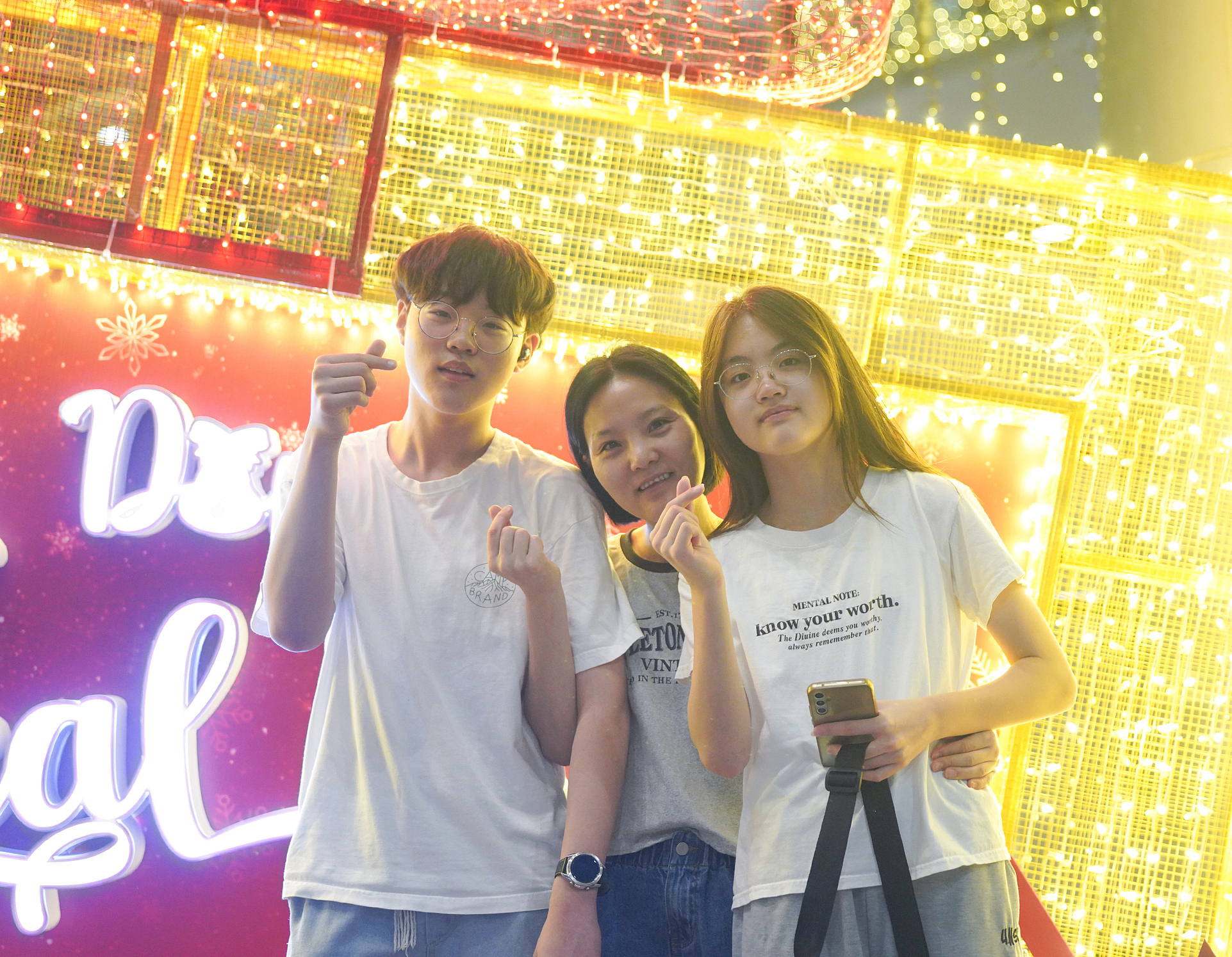 South Korean tourist Jung Woo Sung (left) takes a photo with his family during their trip to Da Nang. Photo: Nguyen Dong